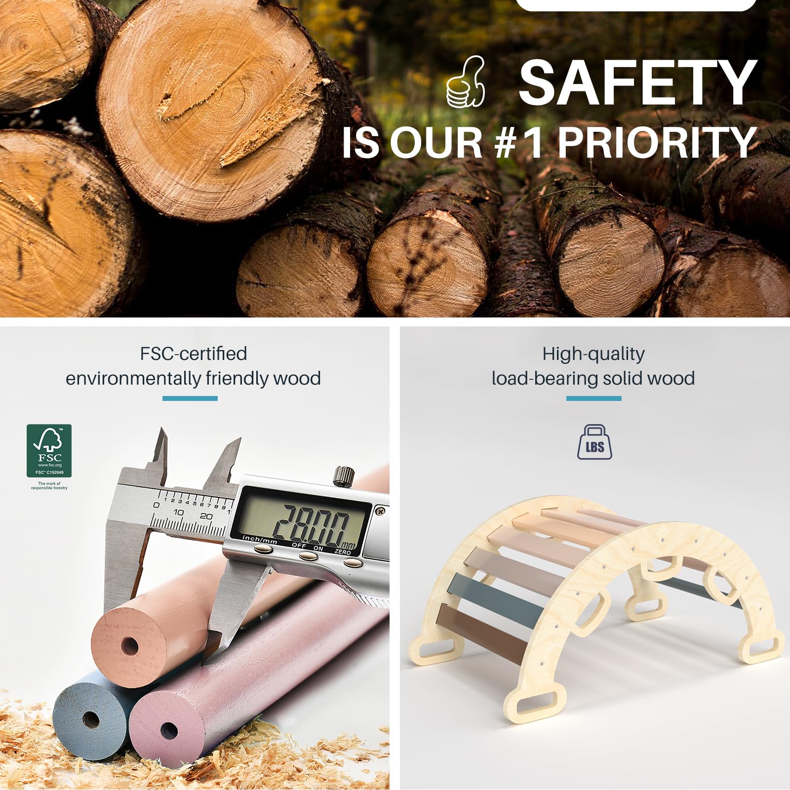 - Perfect Present for Toddlers: Made of premium hardwood, our solid climbing arch supports up to 150 lbs. With high stability and safety, this structure helps children naturally develop motor skills and explore their learning boundaries
