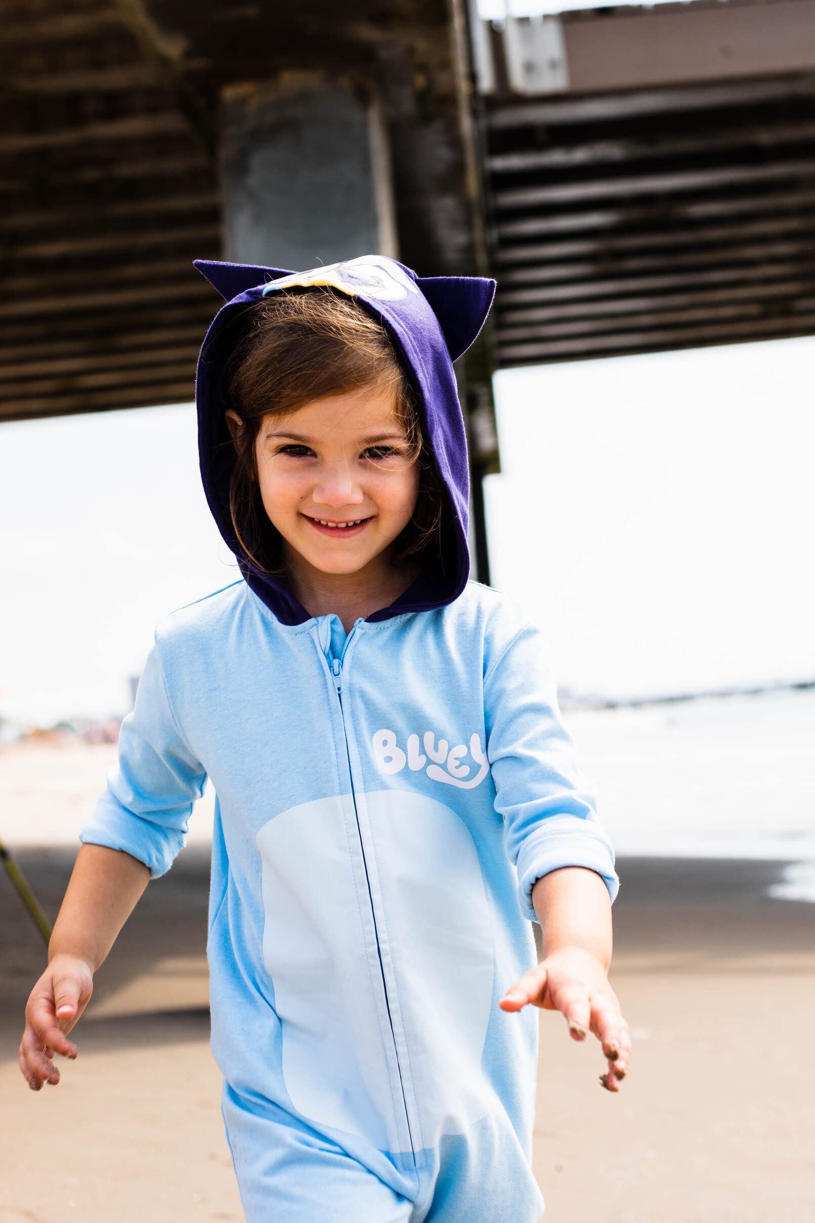 Your kid is ready to play in this adorable Bluey outfit! This stylish long sleeve coverall comes in a choice of Bluey, Bingo, and Muffin designs and features fun and vibrant cosplay artwork your Bluey fan will love to wear with cute 3D dog ears on the hood! Made of a soft material that keeps your child comfortable all day, this fashionable Bluey coverall is the perfect outfit for dress up, adventure, and everyday wear!