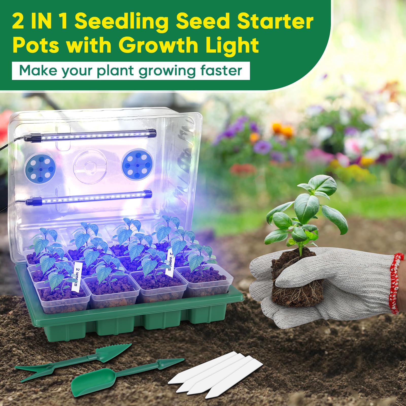 - 【Wide Applications】 The seed starter tray with grow light which is providing a great growth condition for a large variety of plants such as flowers, vegetables, fruits, tomatoes, and other plants.you can learn and get the fun of planting at home with your family.