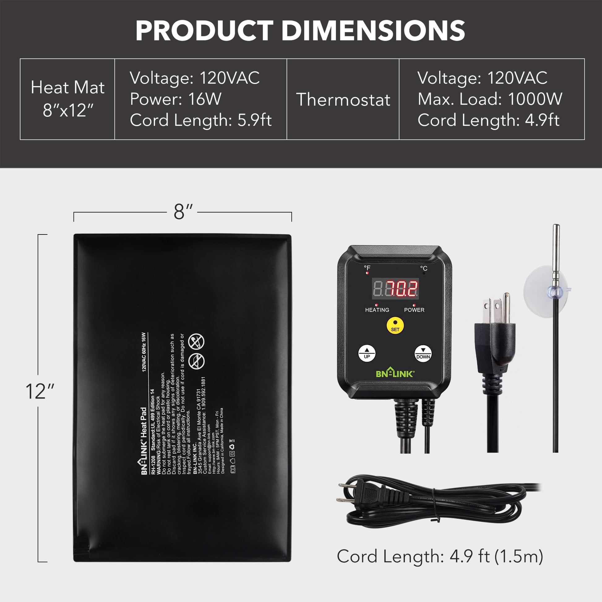 BN-LINK Durable Reptile Heating Pad 8" X 12" with Digital Thermostat Under Tank Heater Terrarium Warmer Combo Set for Turtles, Lizards, Frogs, and Other Reptiles