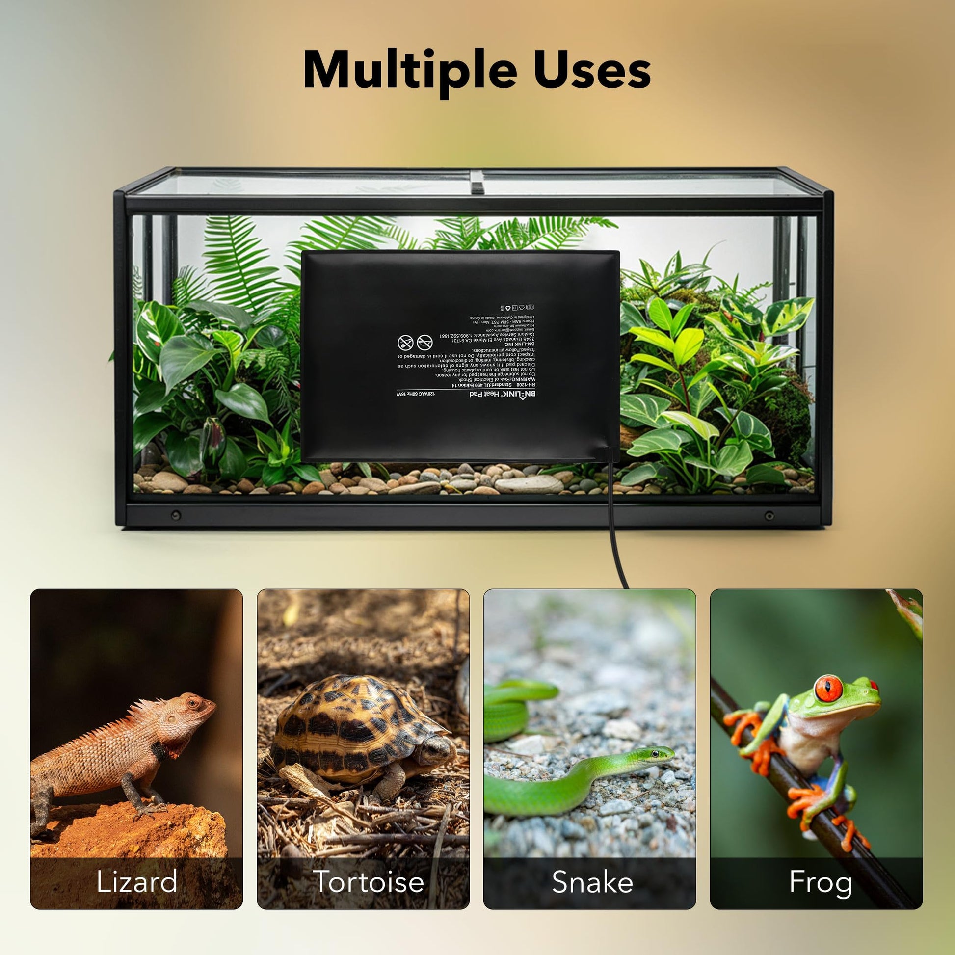 - ✓ CONSISTENT HEATING: The BN-LINK Durable Reptile Heating Pad provides consistent, uniform heating at temperatures around 104°F to 122°F (40℃ to 50℃), which are the perfect temperatures for reptilian species. Suitable more for 30-45 gal tank.