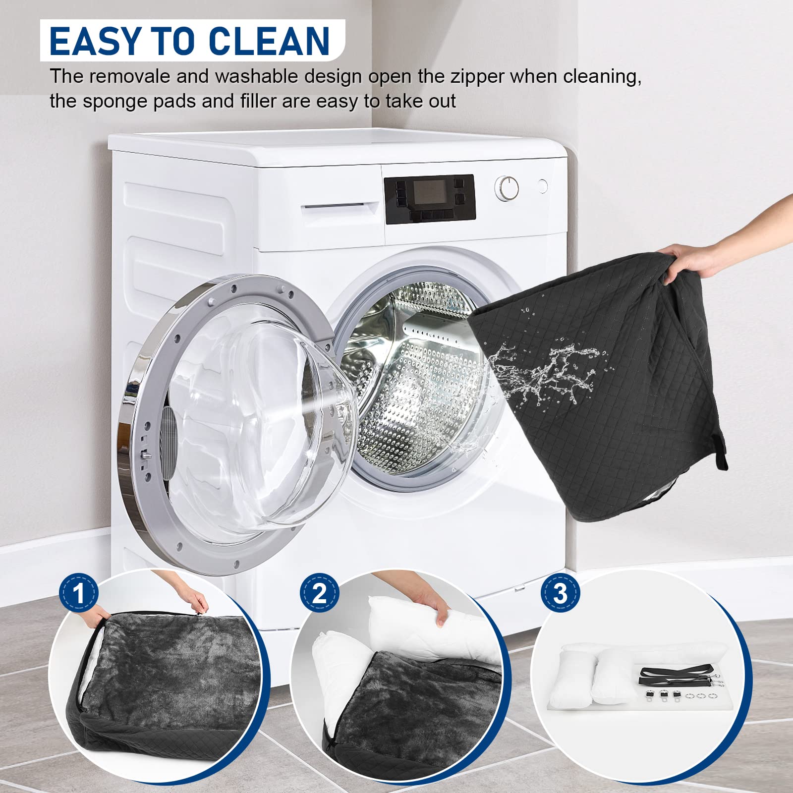 - 🐕DETACHABLE AND WASHABLE: This dog car seat for medium dogs is completely detachable and washable, open the zipper to take out the sponge and filler, and put the dog seat cloth cover in the washing machine for cleaning. Please note: that the inner foam is not washable.