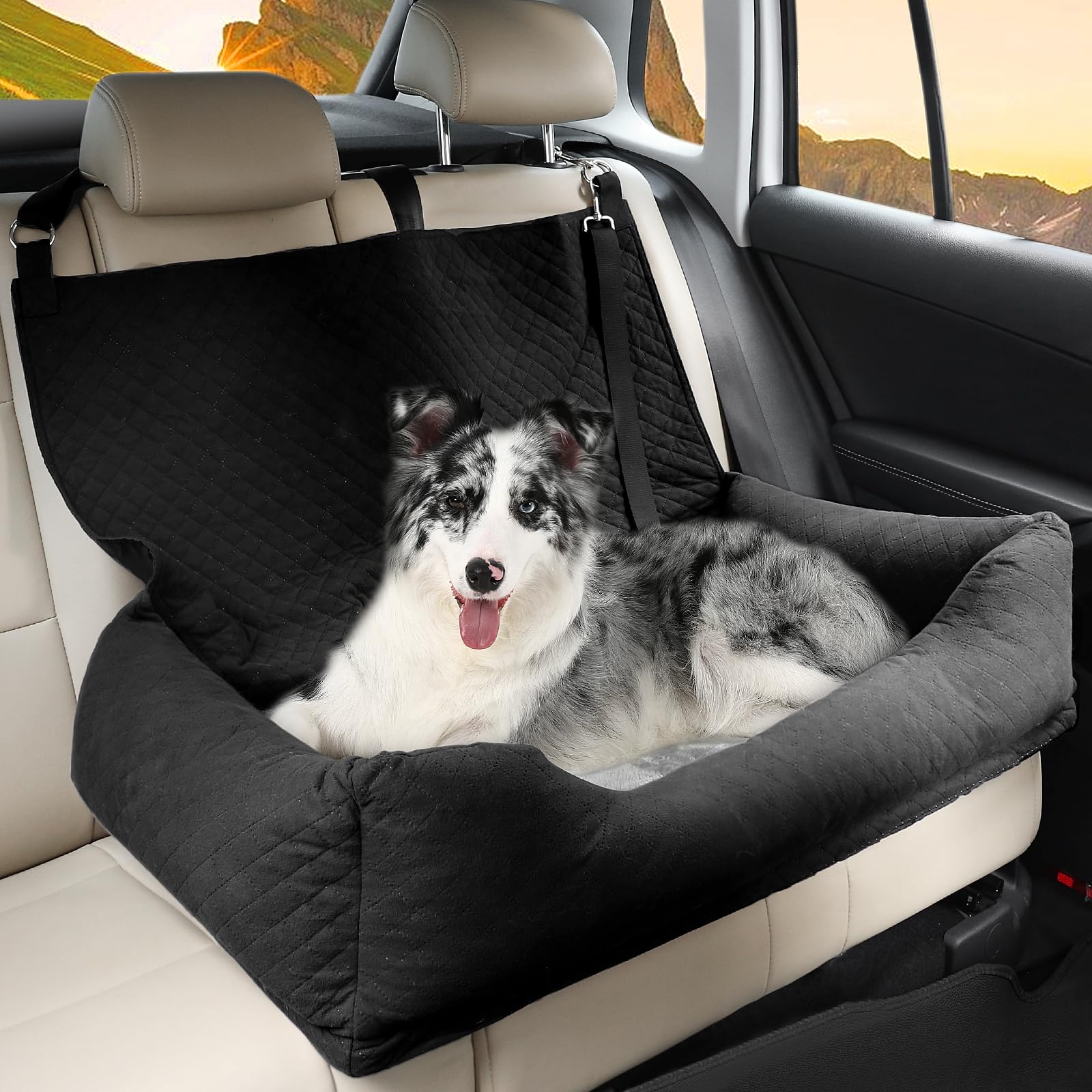 Bnonya Dog Car Seat, Pet Car Seat for Large Dogs, Safe and Comfortable Dog Car Bed Medium Under 60lbs, Multipurpose Design Washable Dog Car Seat with Non-Slip Base