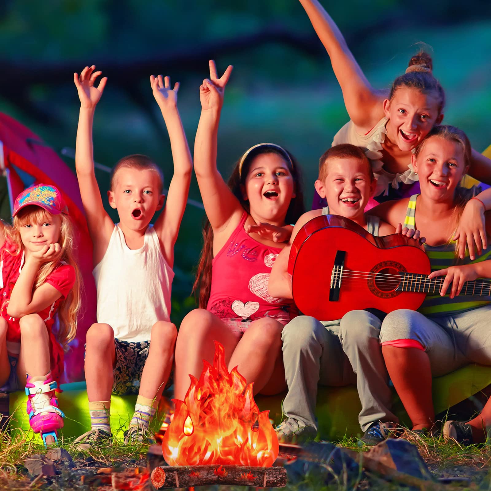 - Multiple Usages: this 3D fake camp fire can be placed on the desktop, by the fireplace, by the entrance door, in the living room, bedroom, outside the tent, children's room, and more; What's more, it is also suitable for birthday parties, summer themed parties, summer camps, camping activities, graduation parties, campfire parties, and other activities