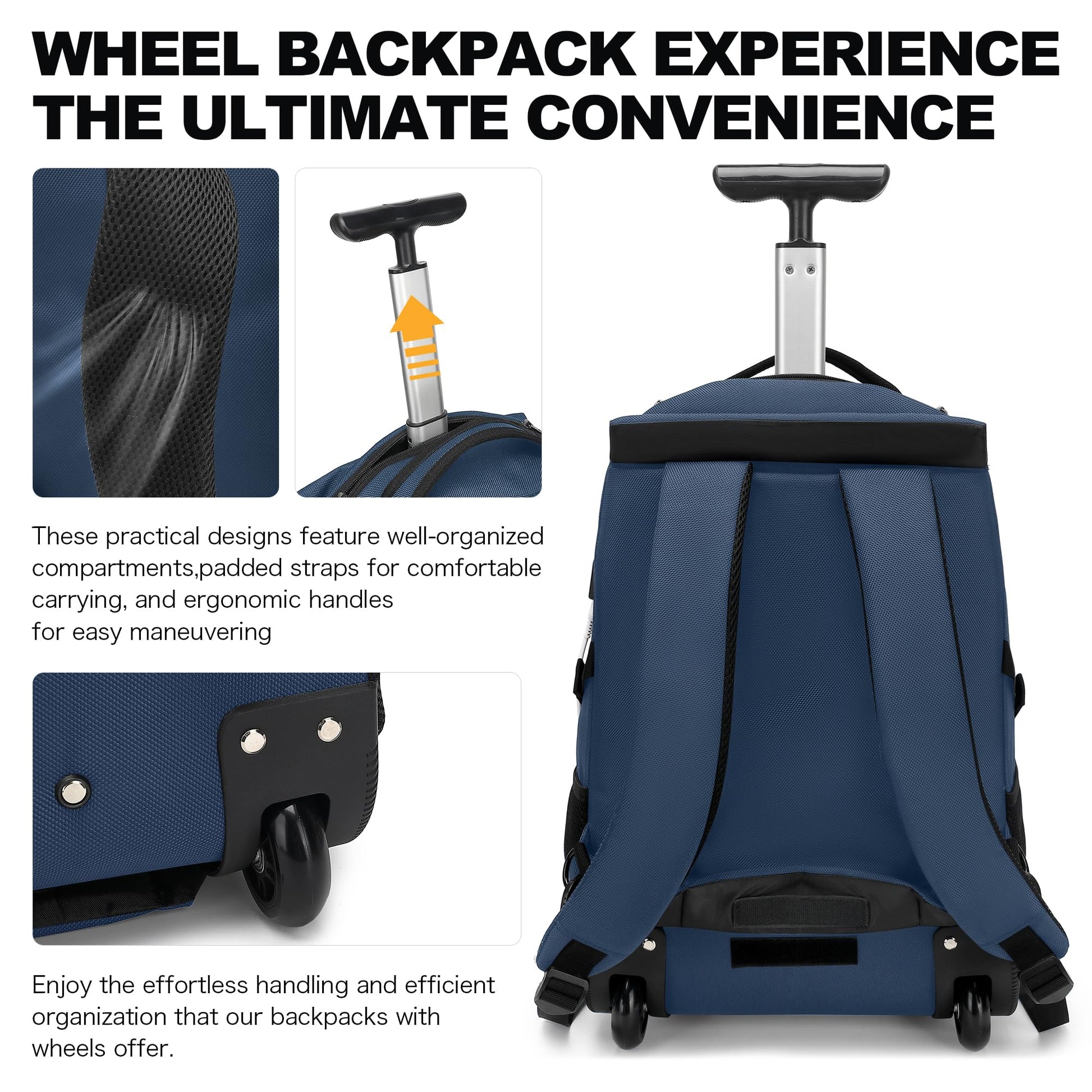 Boavan Rolling Backpack,17 inch Water Resistant Wheeled,Carry on Luggage Business Bag, Overnight College Computer Backpack Trolley Suitcase for Men Women Adults to Travel,Blue