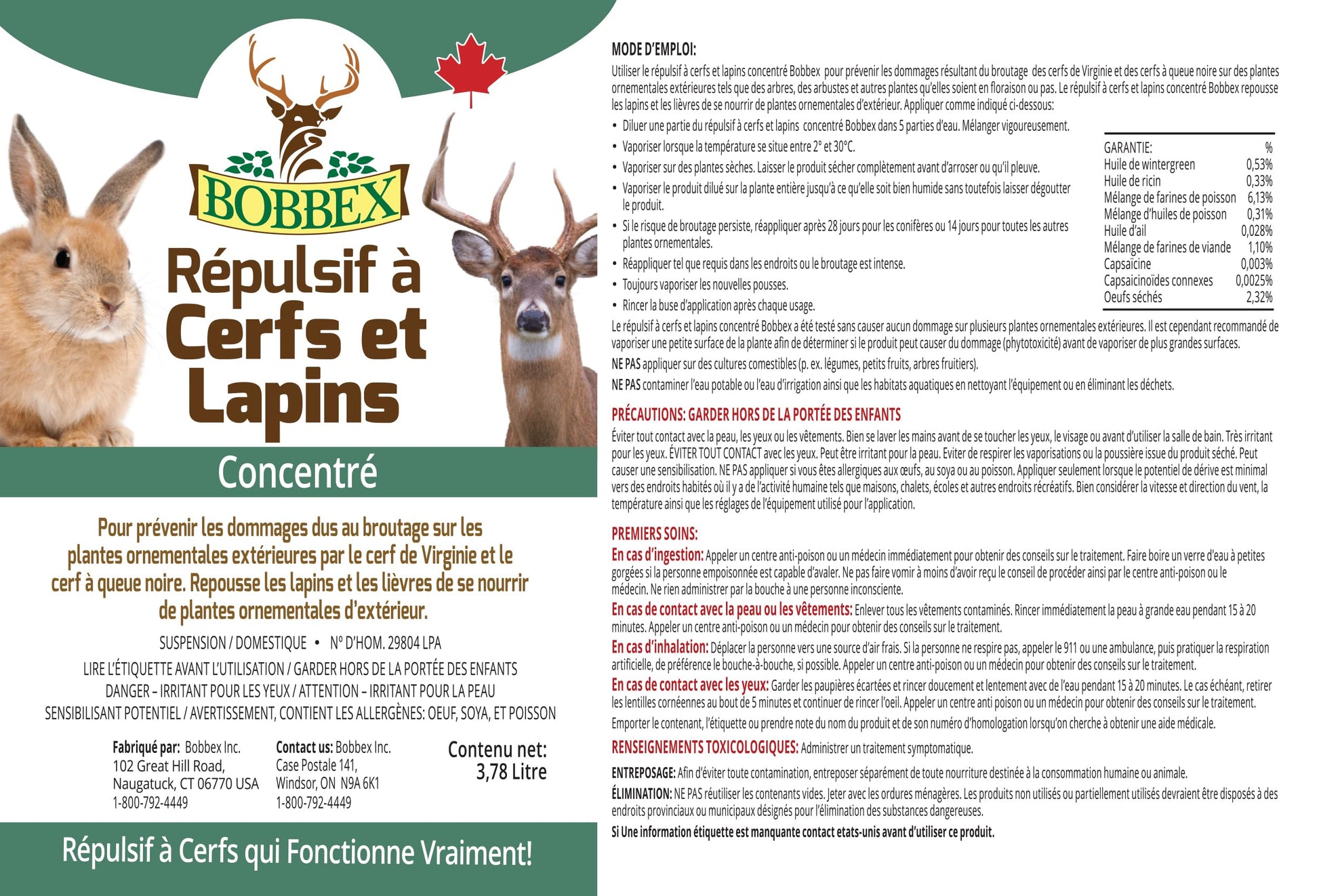 - NATURAL INGREDIENTS - Bobbex Deer & Rabbit Repellent uses natural ingredients that stop deer browsing by using multiple smell and taste deterrents. This animal repellent will keep the Deer & Rabbit from eating your garden or yard.