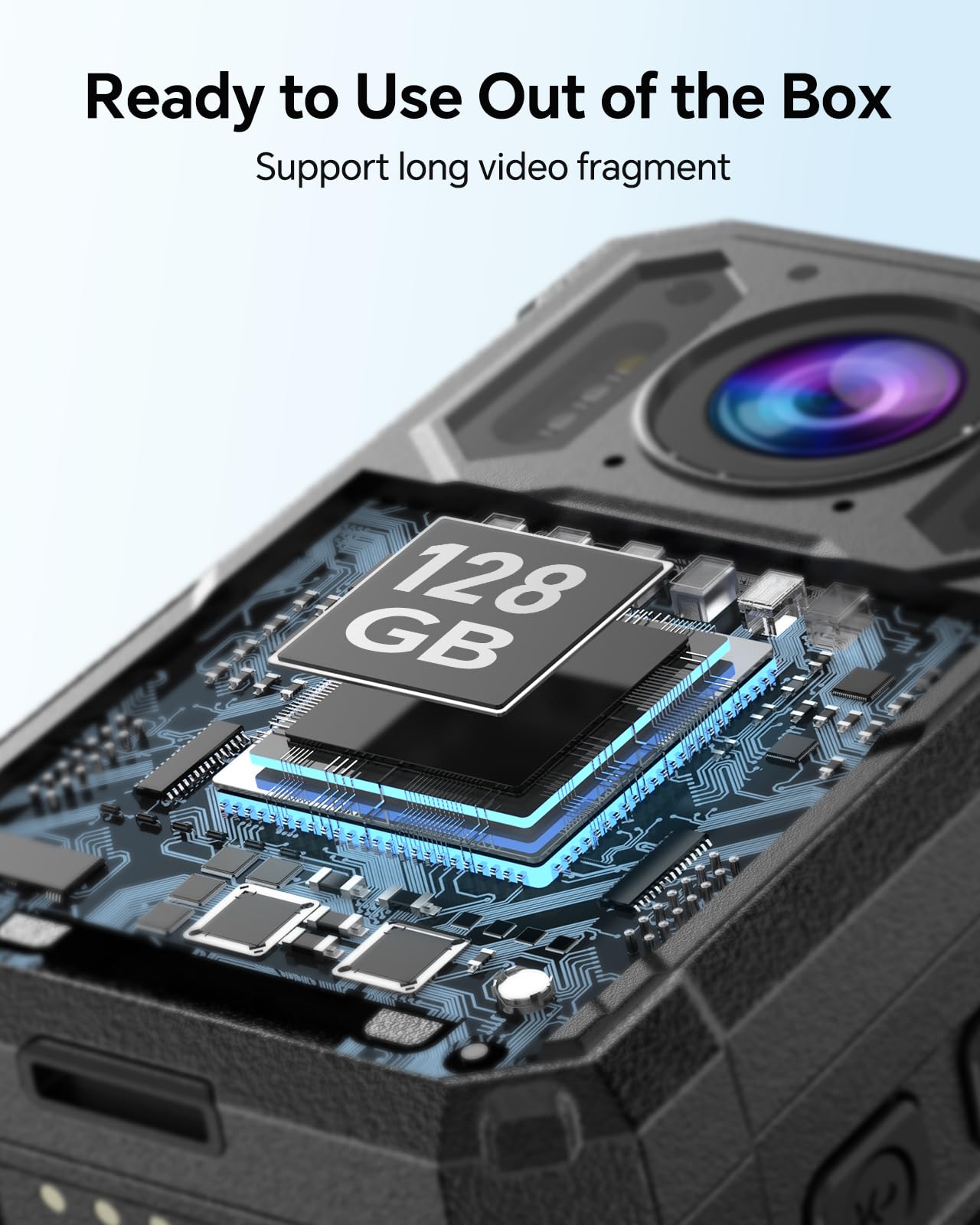 - Built-in 128GB Memory: With 128GB of built-in memory, the KJ23PRO body camera offers ample storage for high-definition recordings