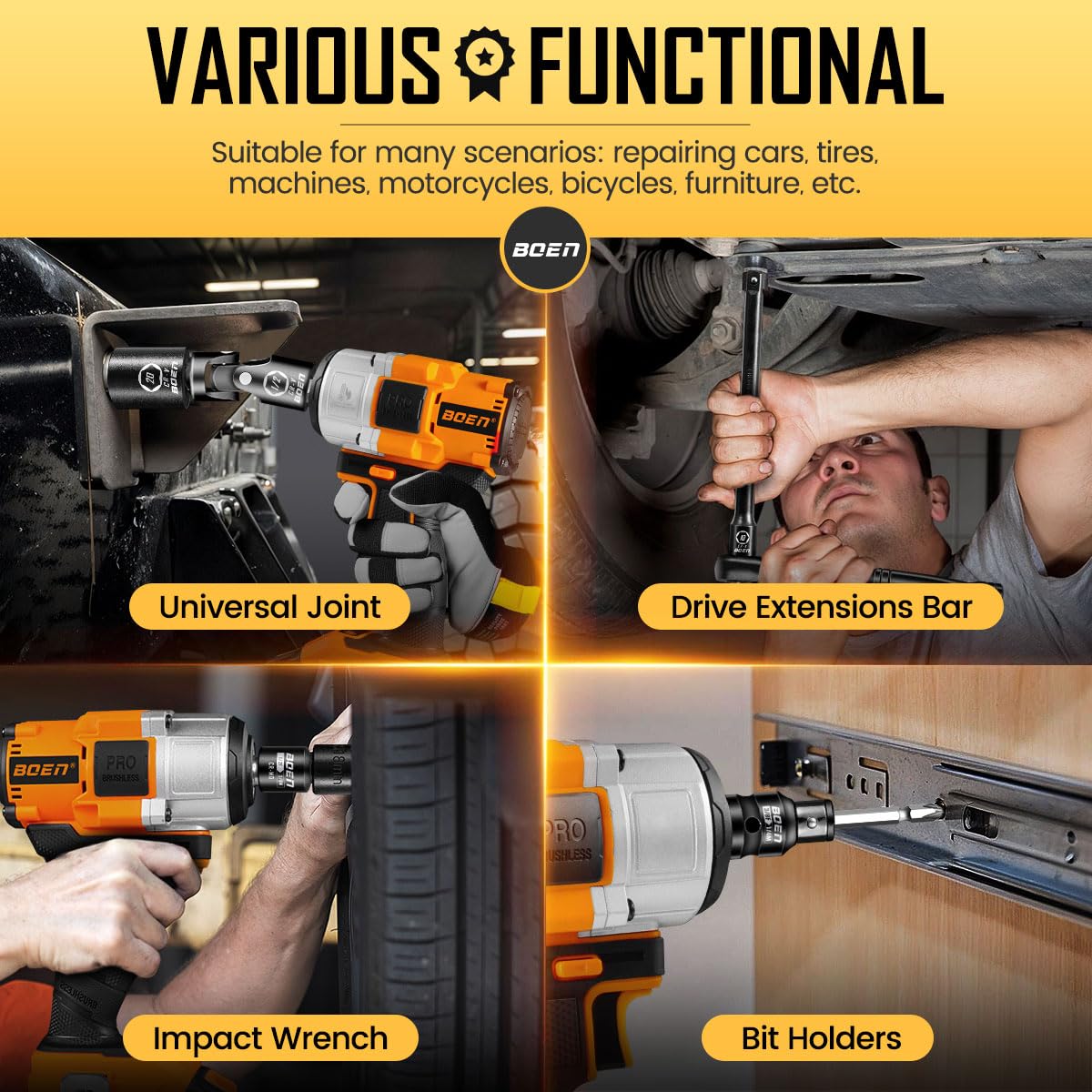 - Premium Quality Materials: Constructed from durable Chrome-Vanadium (CR-V) steel with a corrosion-resistant black phosphate coating, our tool accessories are built to withstand heavy-duty use and provide long-lasting performance