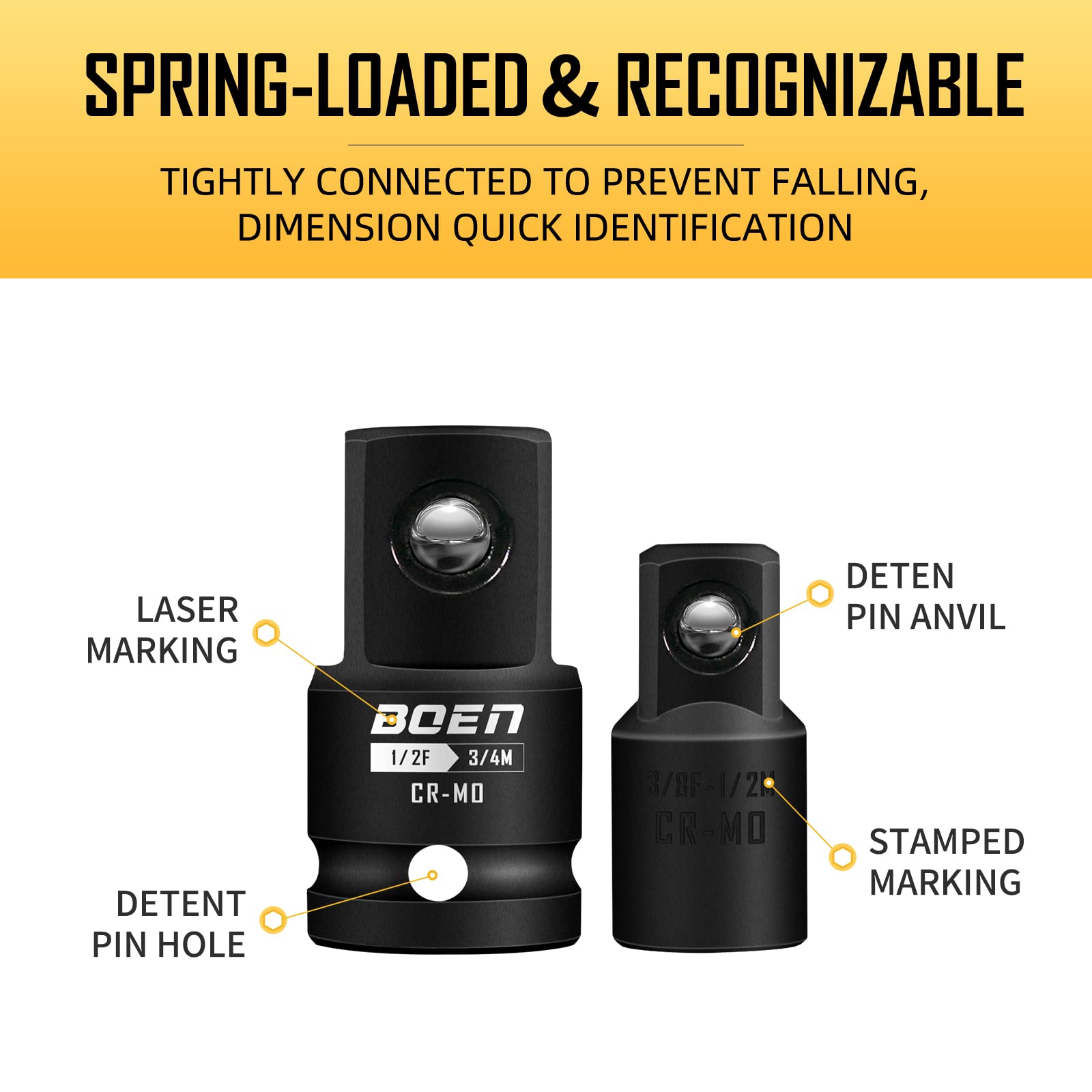 - 【SUPERIOR CR-MO STEEL】 Constructed with heat-treated forged chrome molybdenum steel material, BOEN impact adapter set features high hardness and durability, and can withstand the test of different jobs.