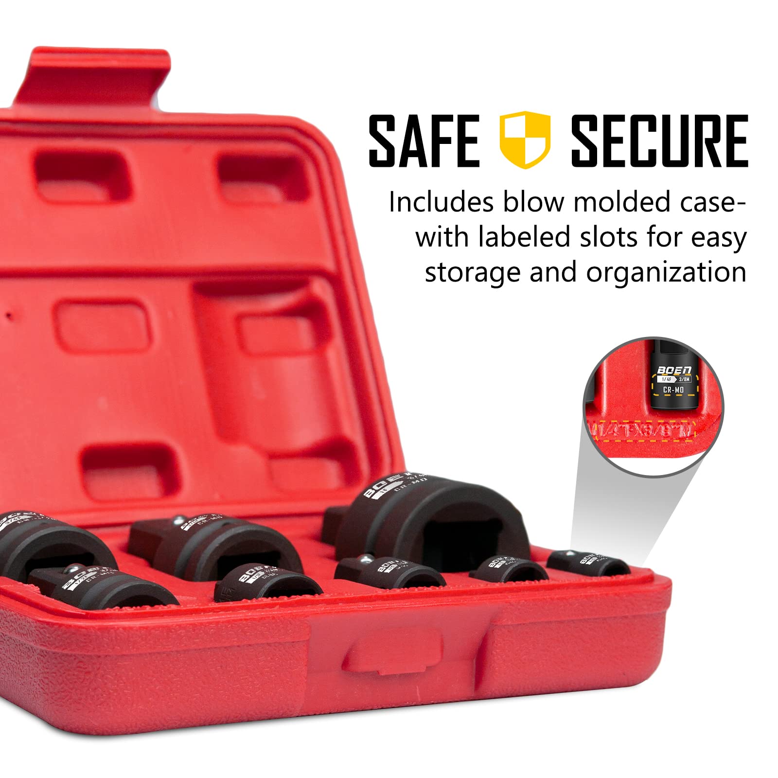 BOEN 8 Piece Impact Socket Adapter and Reducer Set, 1/4" 3/8" 1/2" 3/4" Drive Socket Adapter Set with Durable Case, Reducer Converter Adapter Set for Impact Driver Conversions (Upgraded)
