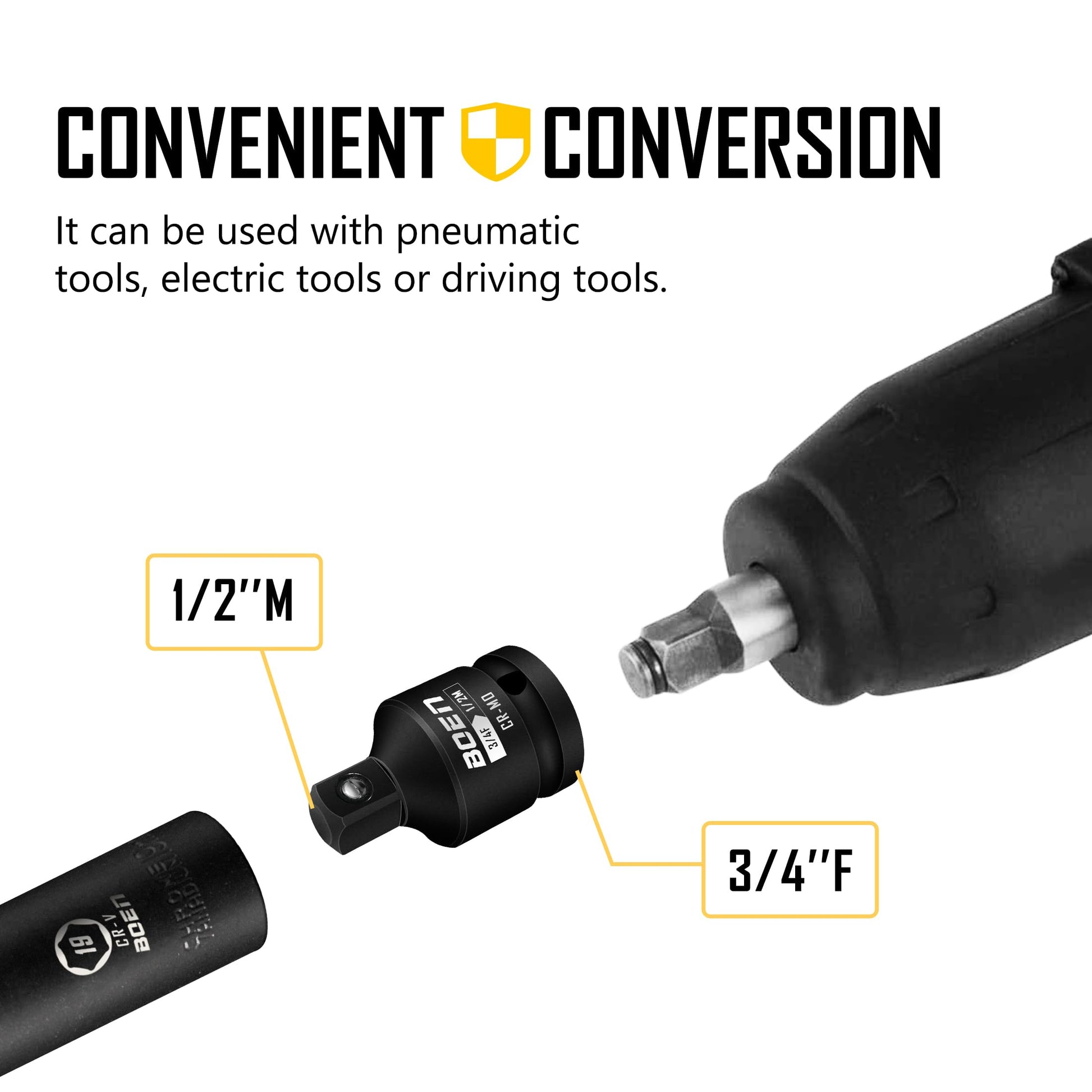 - 【WIDE APPLICABILITY】 Complete impact drive socket adapter set, with convenient conversion and strong compatibility, can meet all your needs. Designed for drivers, wrenches and ratchets. It can be used with pneumatic tools, electric tools or driving tools.