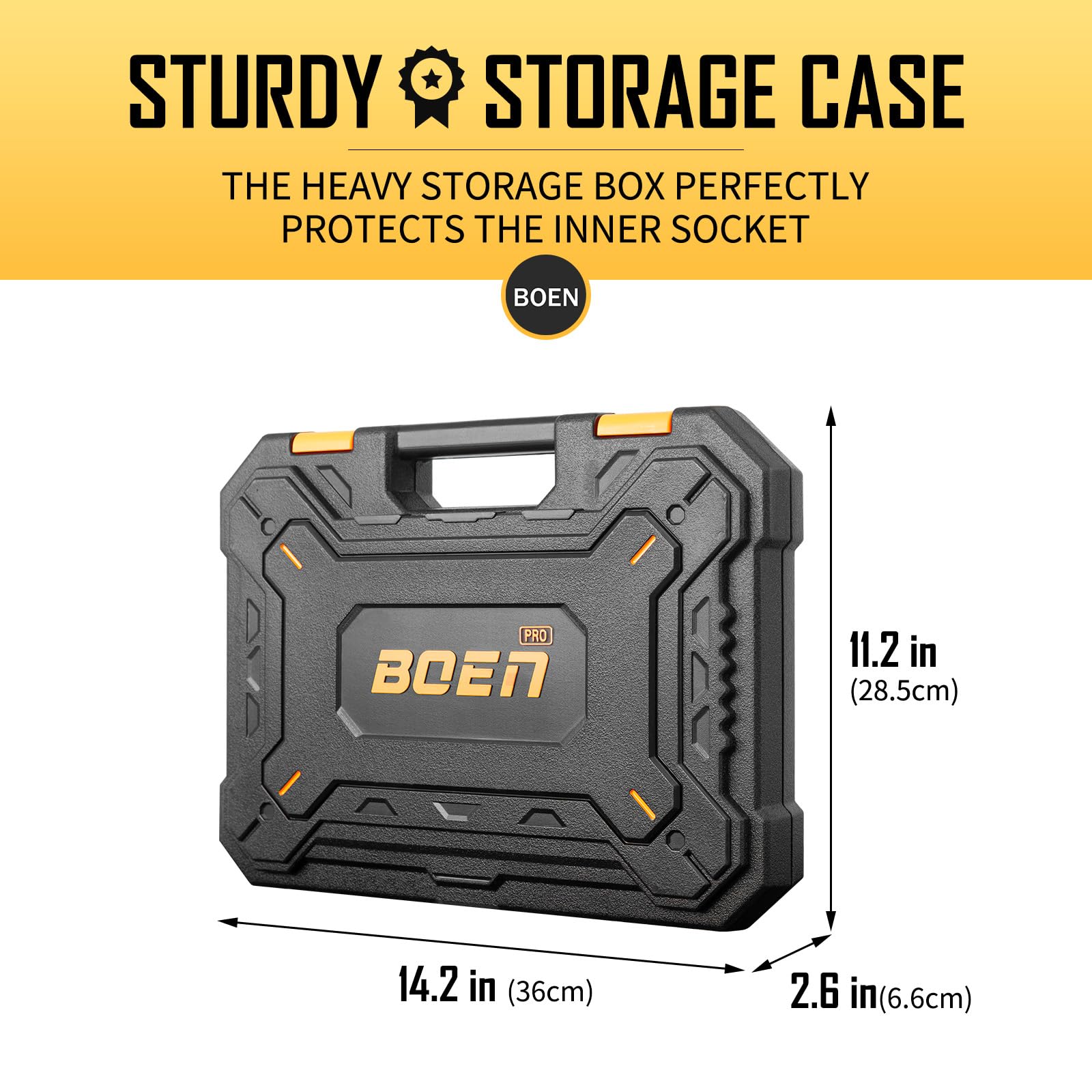 - STAY ORGANIZED & PORTABLE: The heavy-duty blow-molded shell tightly wraps all the parts to avoid damage. Blow-molded enclosure with label slot for easy storage and organization of the socket. You can easily take it to the garage or outdoors to fix your car tires and other problems. A standard socket kit meets the needs of the whole family
