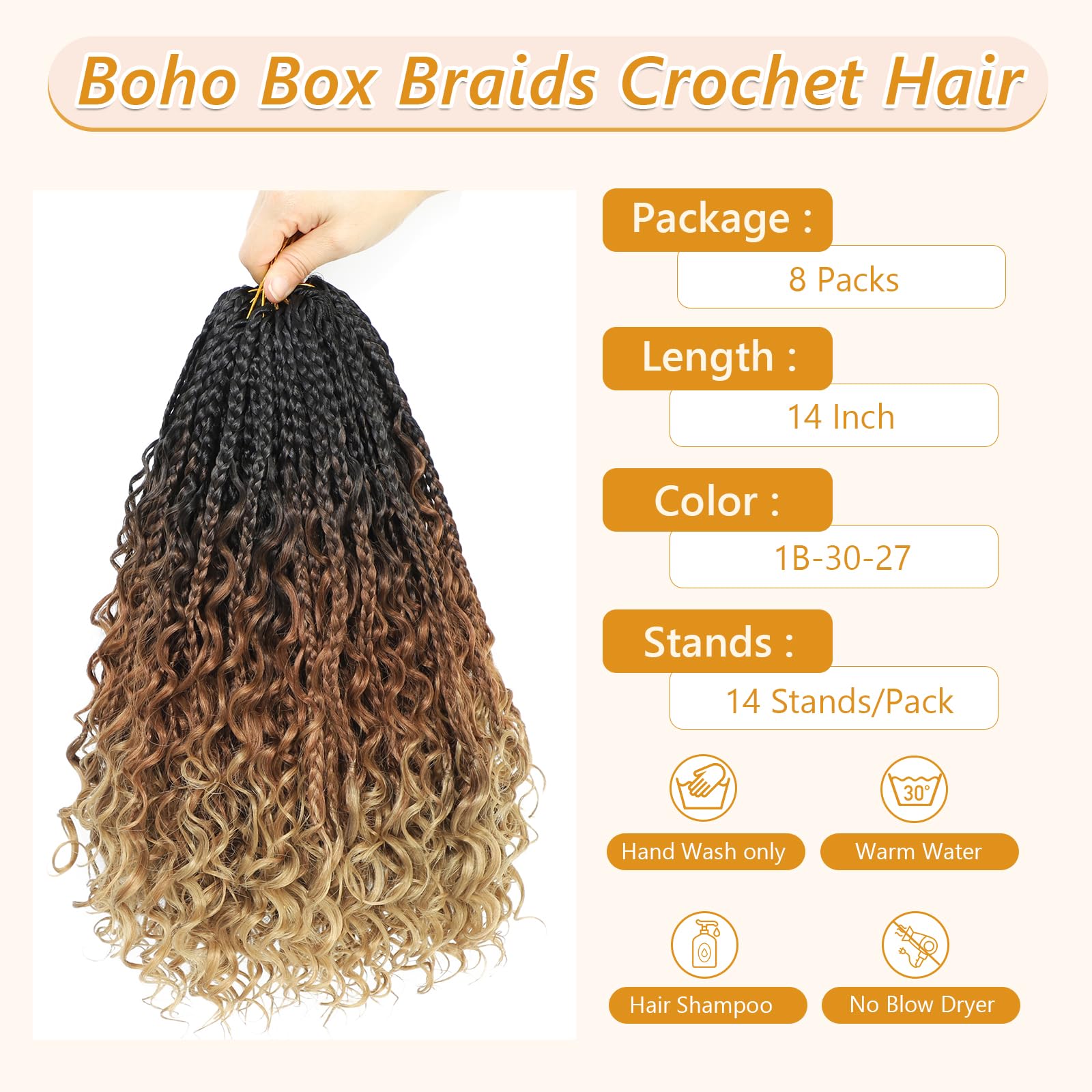Boho-Häkel-Zöpfe mit lockigen Enden,Häkelhaar, für schwarze Frauen, Göttinnen-Zöpfe, Boho-Zöpfe, Häkelhaar, vorgeschlungen (35.6cm-14 Zoll (8 er pack), 1B/30/27#)