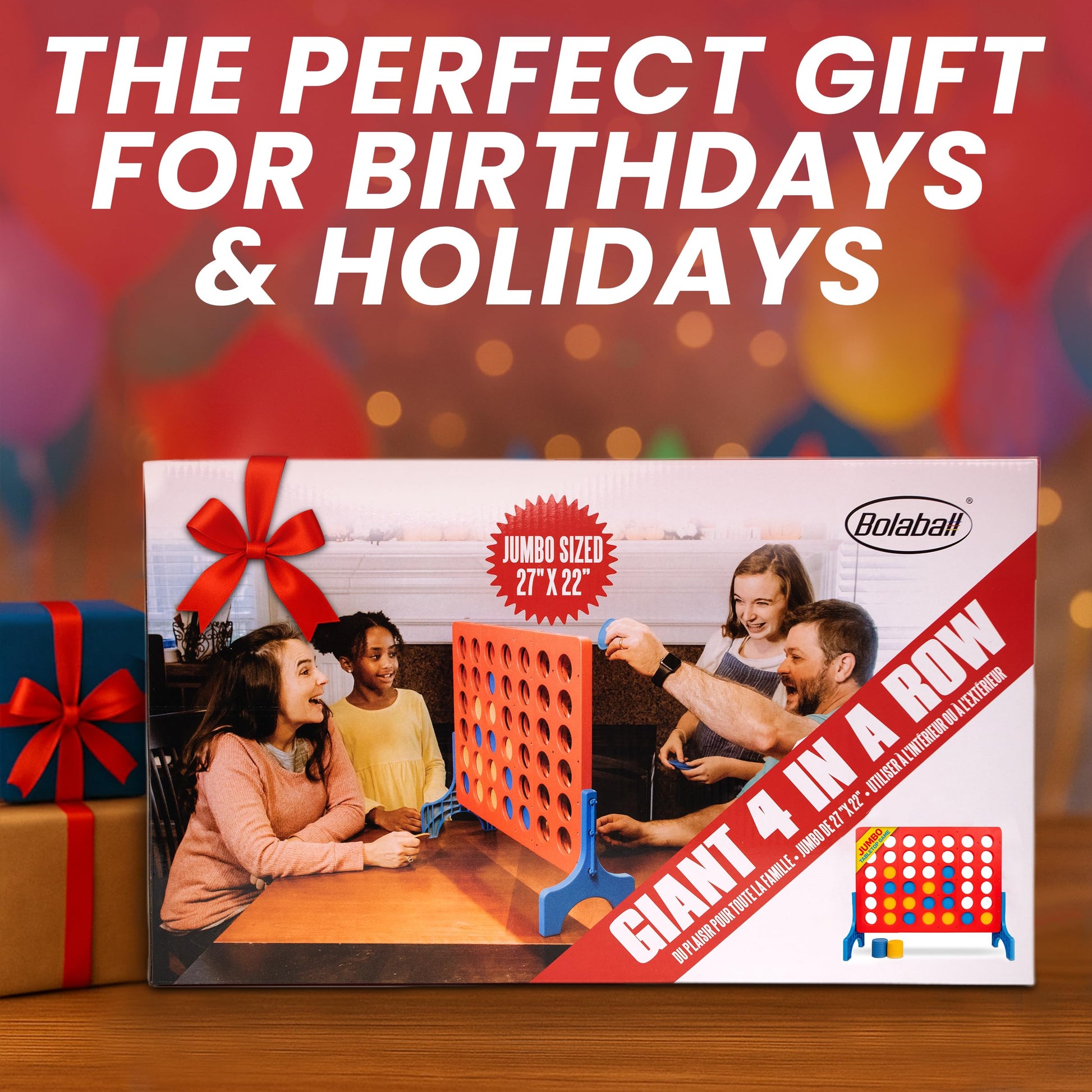 - GIGANTIC FAMILY FUN: This jumbo 4 connect in a row is the perfect way to bring your kids and family together with something new! Simple yet strategic gameplay ensures that it is fun for all ages! Little kids will have a blast placing the massive coins in this oversized version of a beloved board game. On the other hand, there is plenty of opportunity for more competitive games between adults and teenagers!