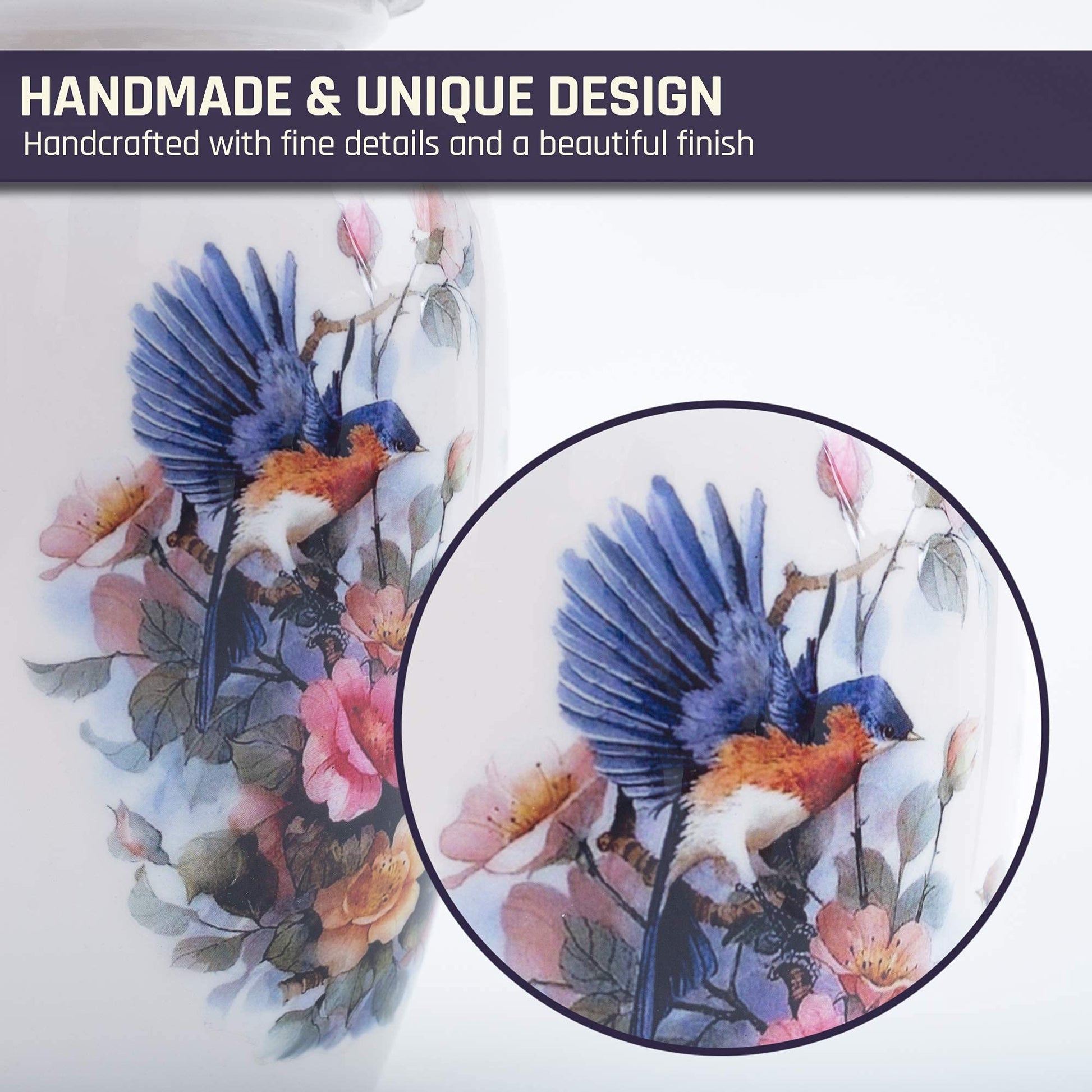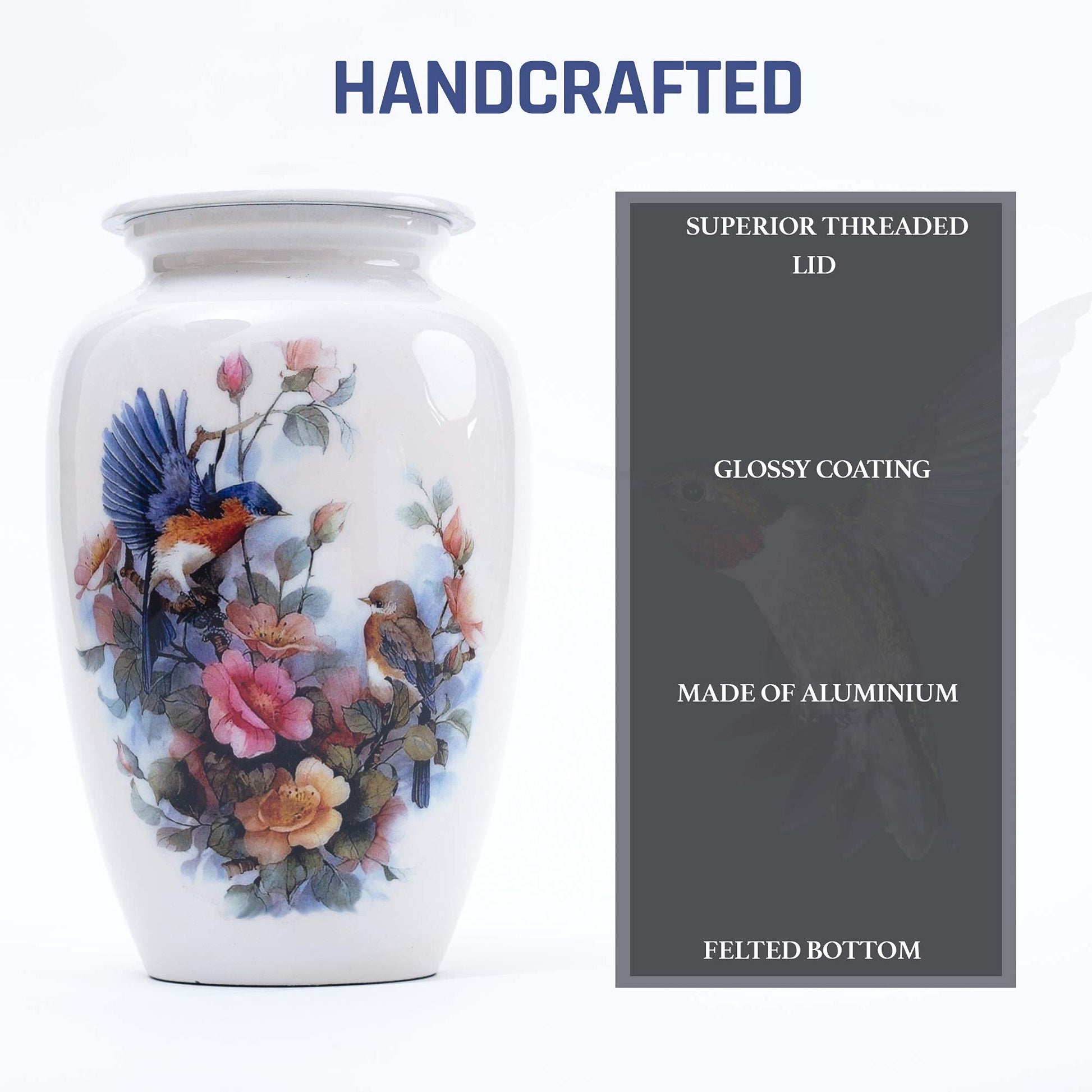 BOLD & DIVINE Birds Cremation Urn | Human Ashes Adult Memorial urn, Burial, Funeral Cremation Urns | 200 Cubic Inches (Large/Adult Urn) with Unique Velvet Bag