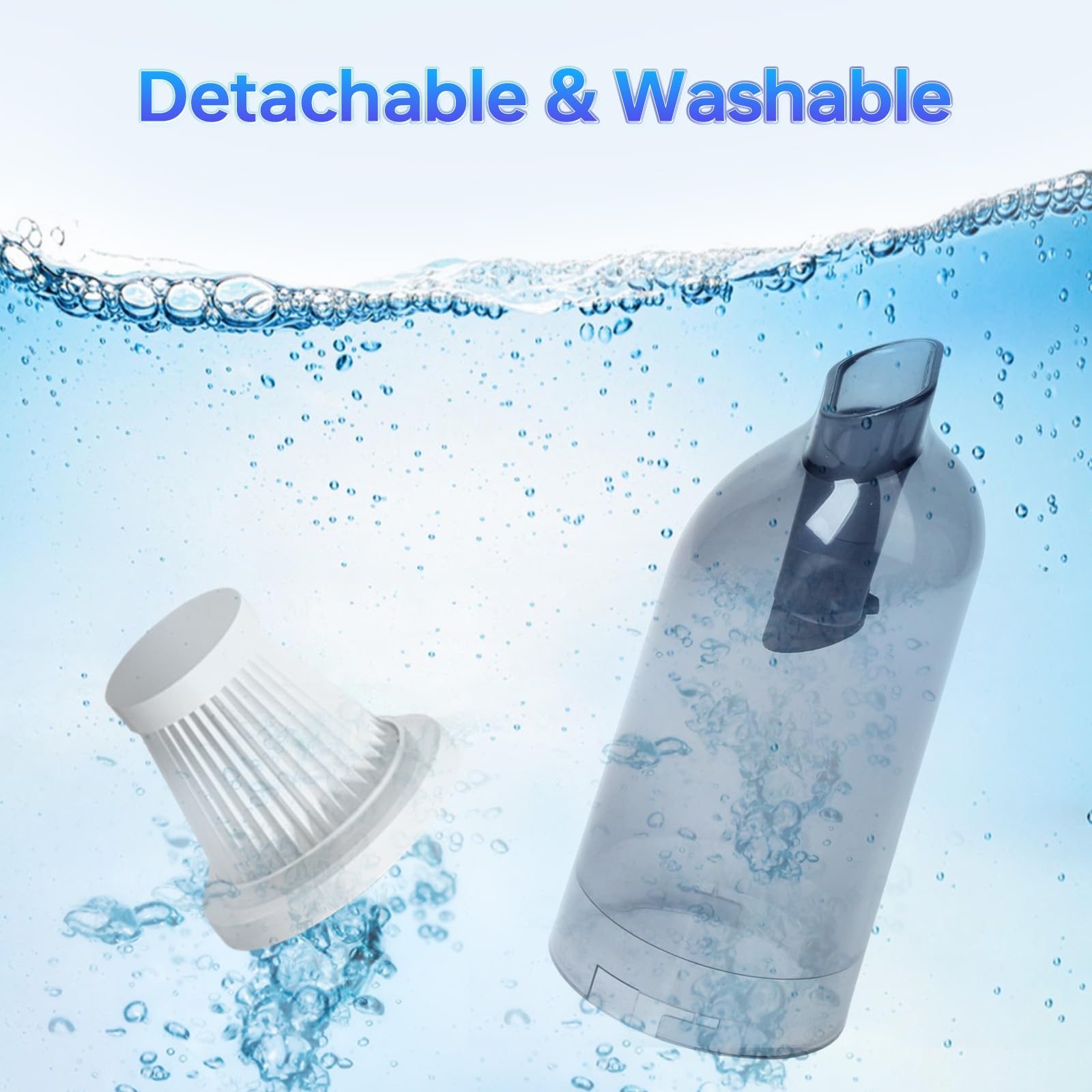 - EFFORTLESS MAINTENANCE - With just one-click dismantling, you can easily dump garbage and clean the hand vacuum cleaner. The HEPA filter can be washed and reused, ensuring efficient suction power while keeping dust and dirt outside to prevent damage to the motor. Please dry it before putting it back into the car vacuum cleaner. If you have any questions or problems about our hand held vacuums cordless rechargeable, don't hesitate to get in touch with us. (Please fully charge the device before first use)