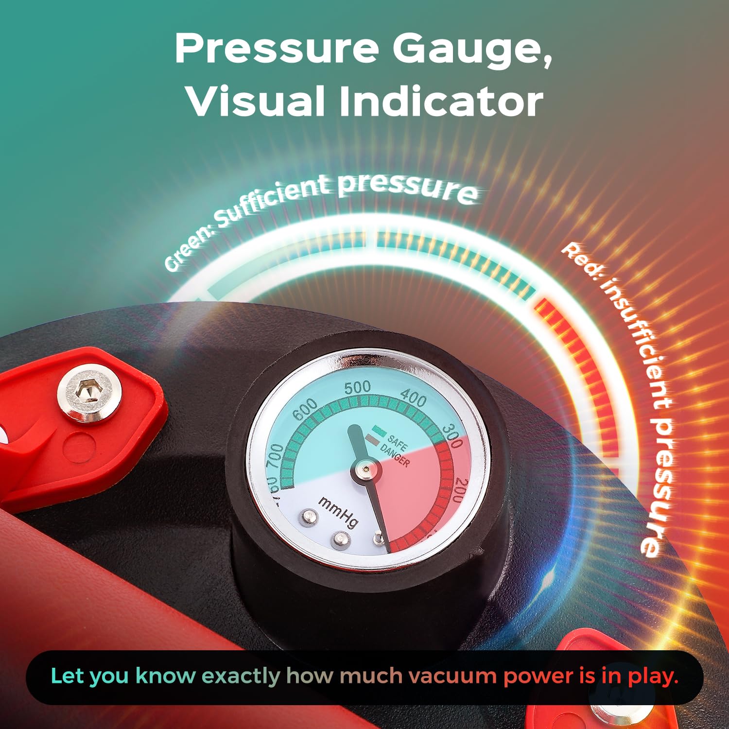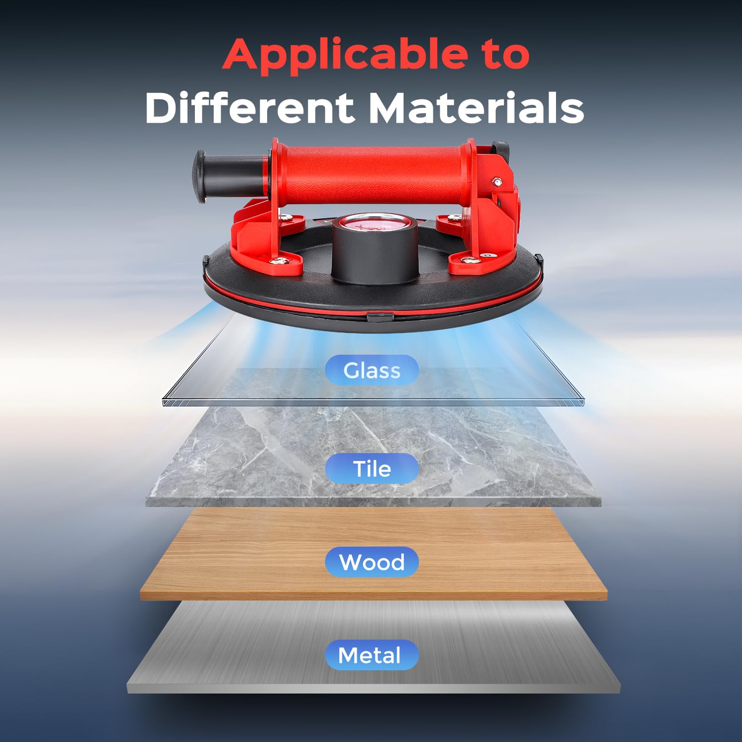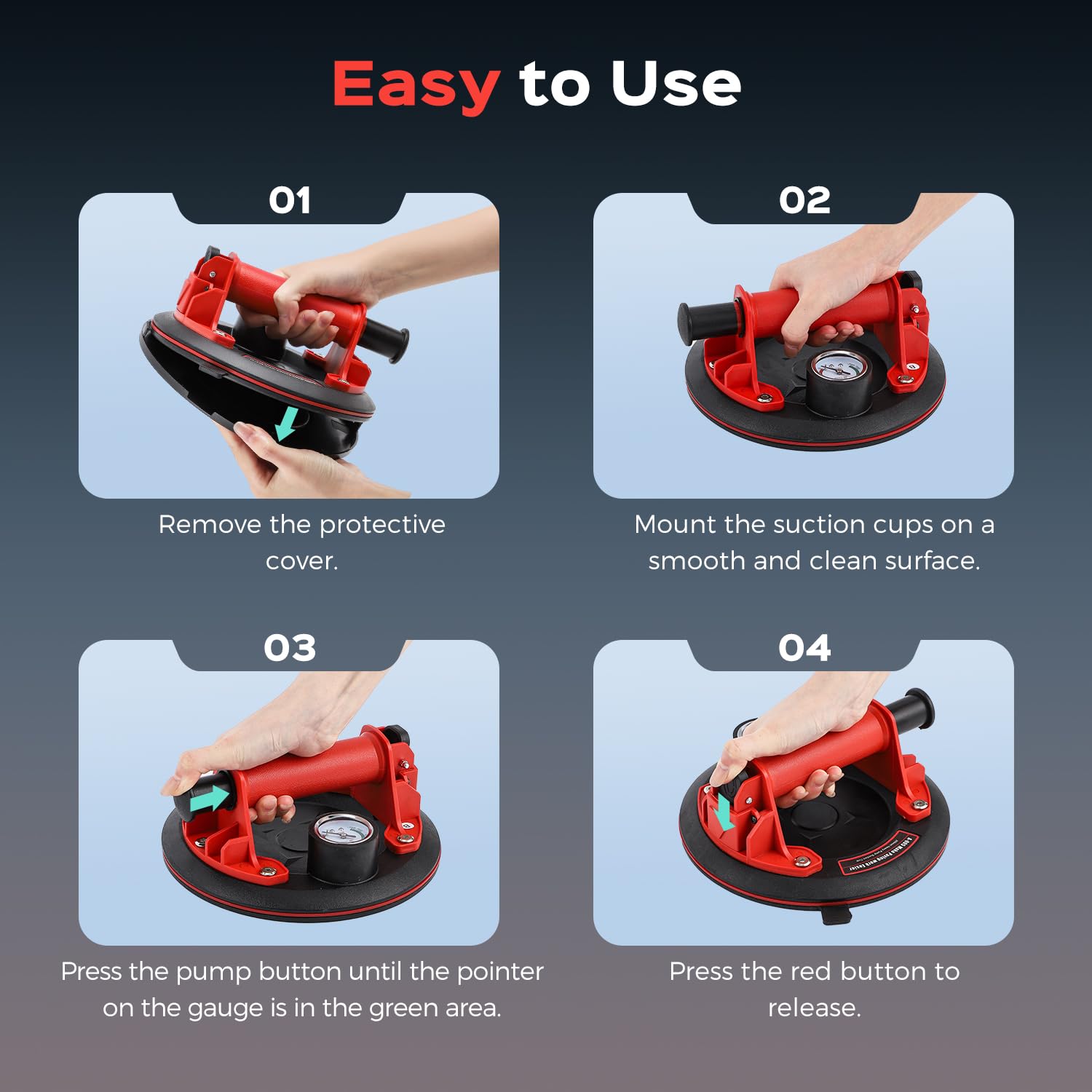 - Pressure Gauge, Visual Indicator - The gauge of the glass carrier suction cup lets you know exactly how much vacuum power is in play, lets you see if you have enough suction to lift your object.