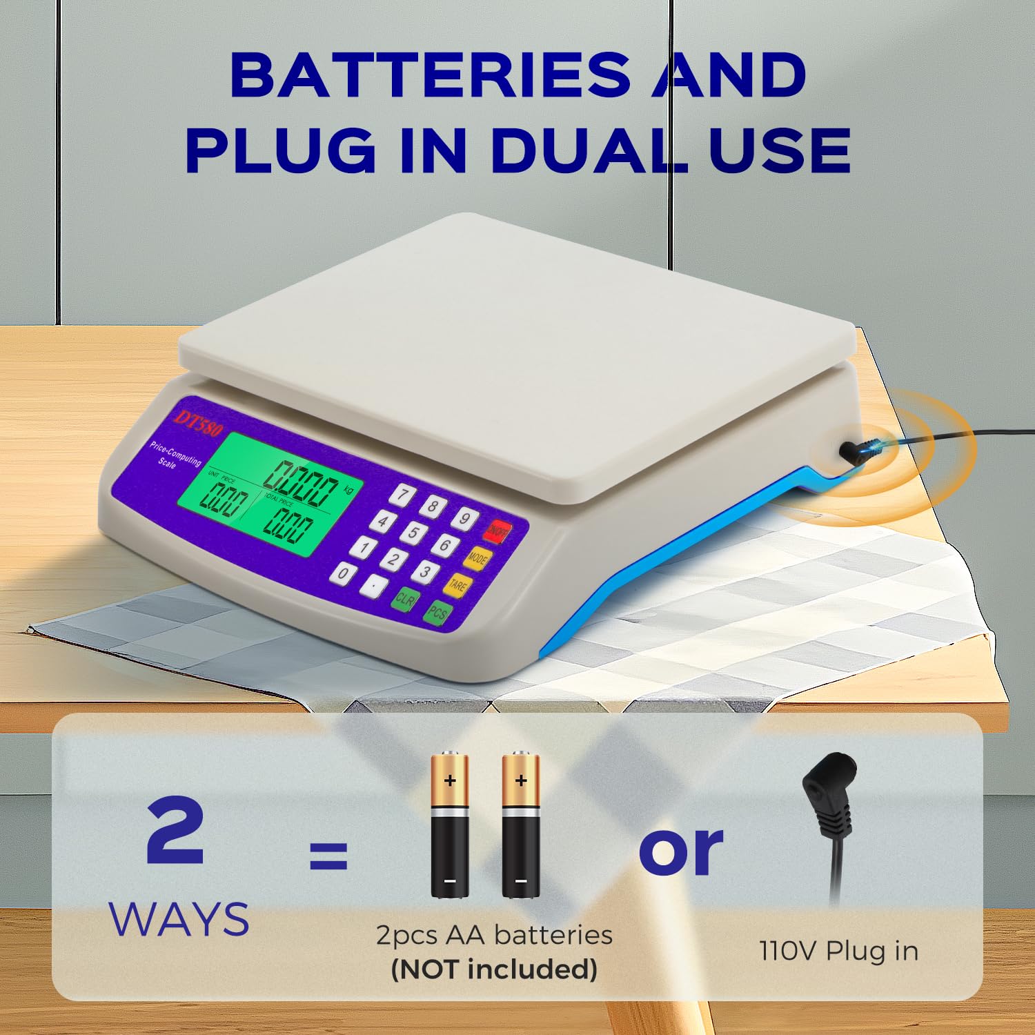 - Batteries and Plug in Dual Use - The produce scale can be powered both by 2pcs 1.5V AA batteries (not included) and adapter (included). It can be plugged in when you want to save on batteries while it can work on batteries when there is no power nearby.