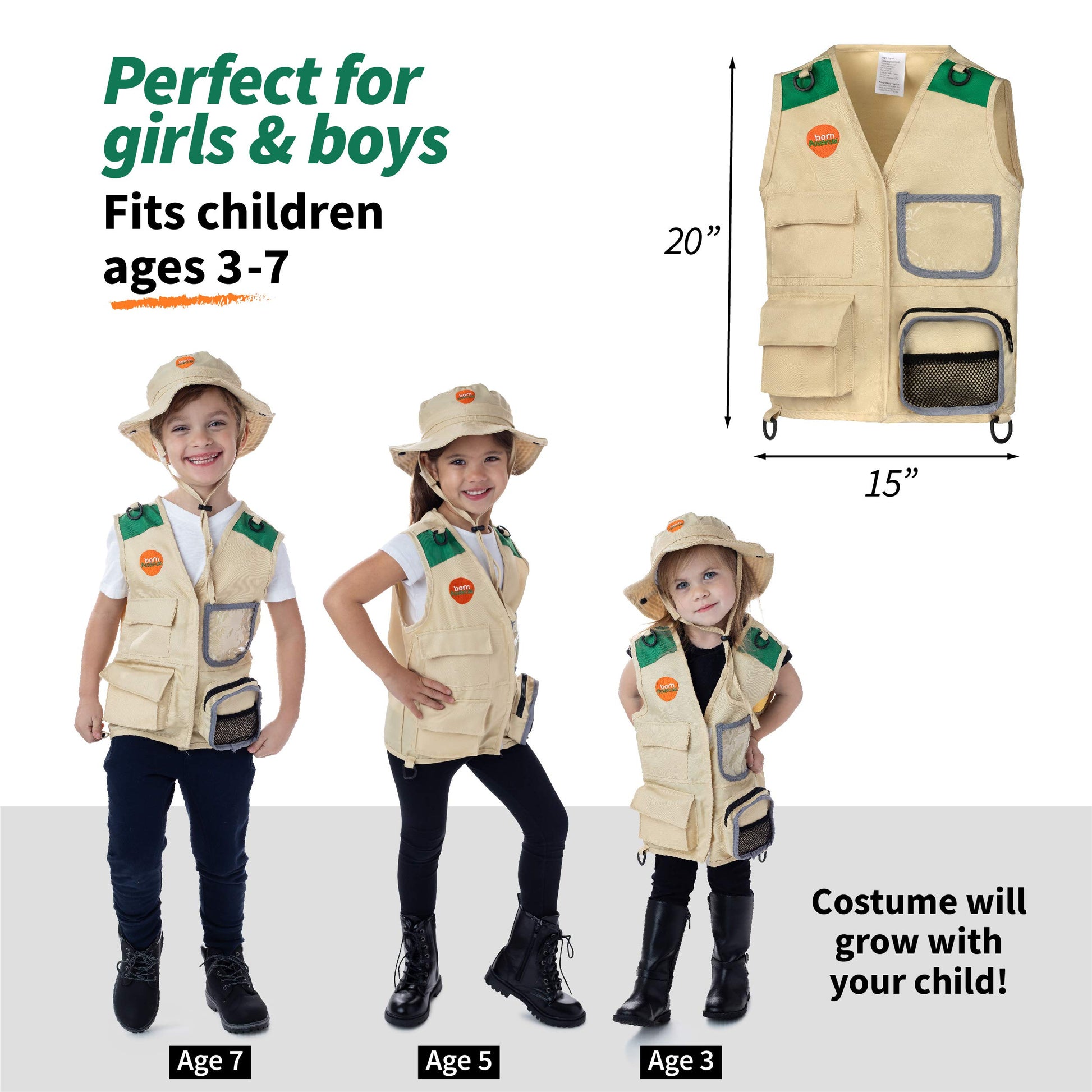 - IDEAL GIFT: This outdoor kit for kids is useful for educational games and keeps children entertained & happy! Complete with its explorer costumes for girls and boys perfect for games like kids bug catching kit or as kids fishing vest