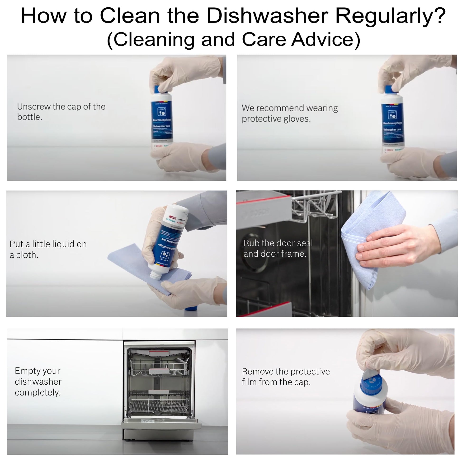 Details: Removes grease and limescale. Also suitable for cleaning the door seal. Use every 1-2 months. Regular use ensures flawless washing results and a long service life. Easy to use - one bottle per treatment. After the special metal foil has been removed from above, the bottle is placed upside down (without utensils) in the washroom and the program is executed