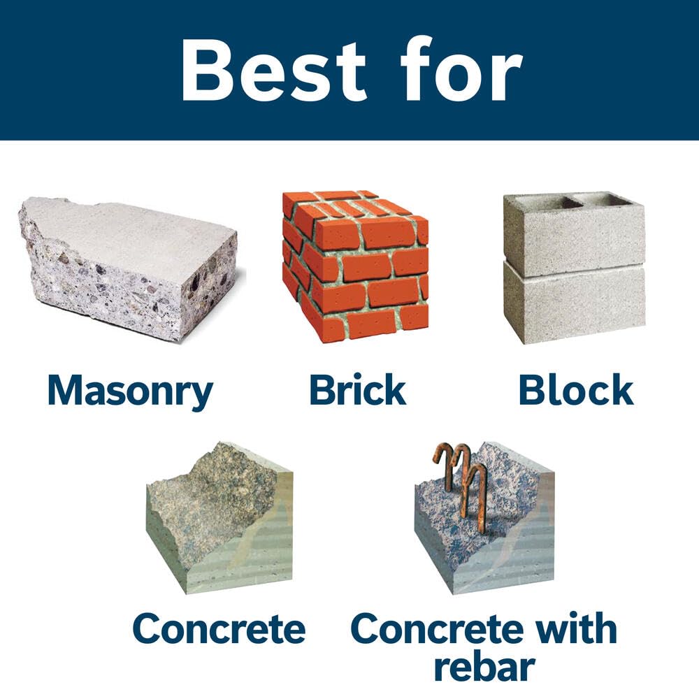 • Four-cutter head – provides four cutting edges to hit rebar, to help prevent the bit from getting stuck