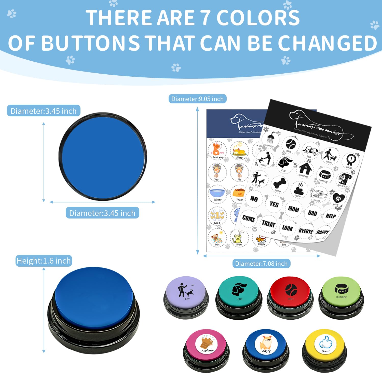 BOSKEY Set of 7 Dog Buttons for Communication Words 30-Second HD Recording Button Recordable Buttons - Waterproof Pads and 50 Stickers Train Your Dog to Voice What They Need