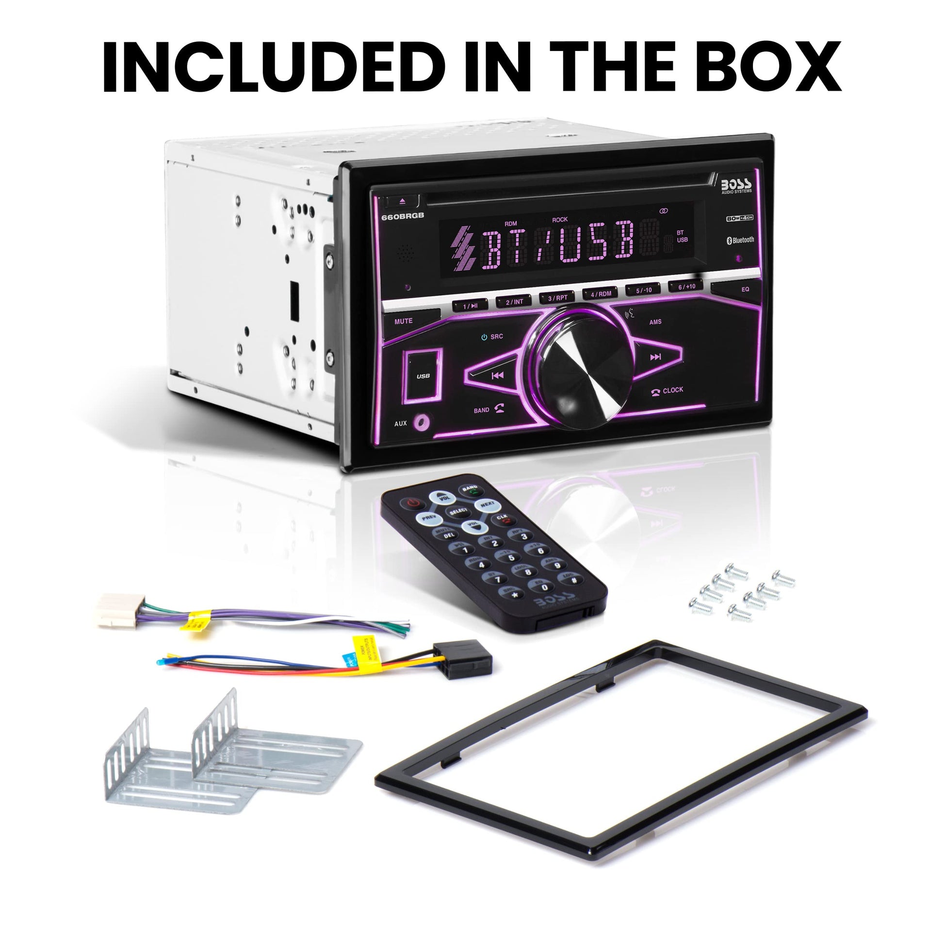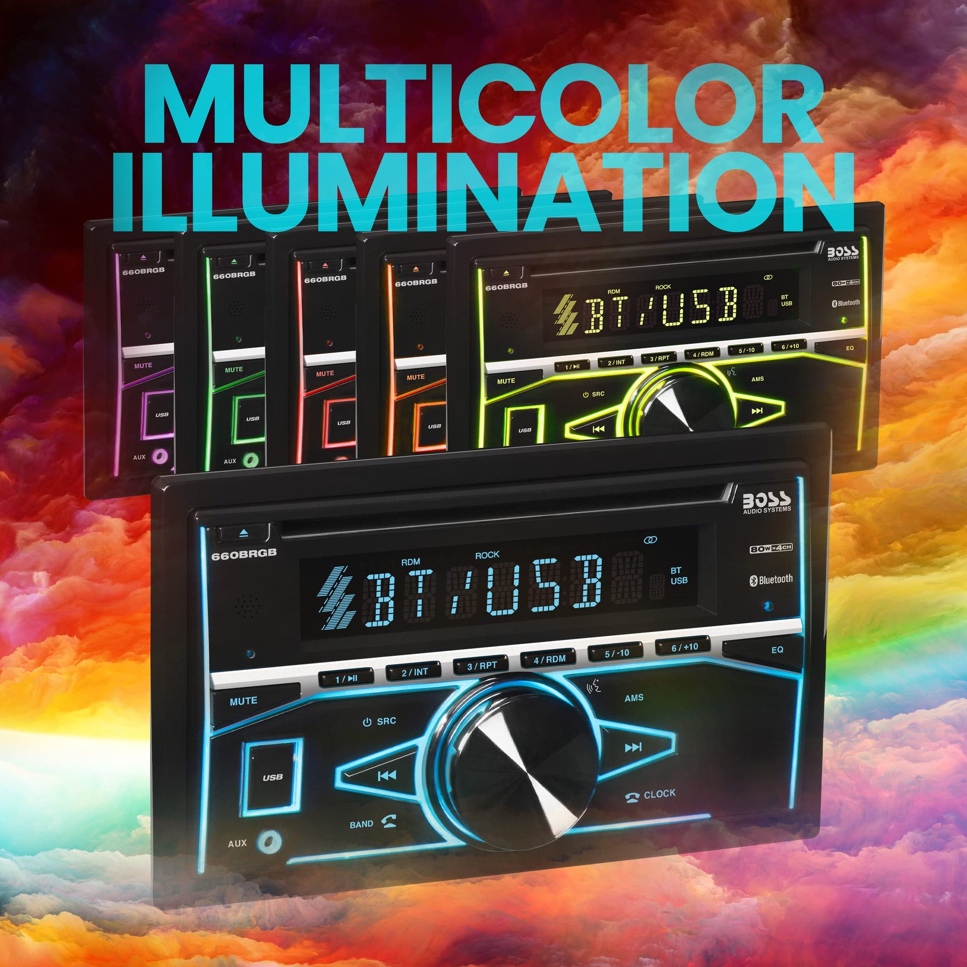 BOSS Audio Systems Elite 660BRGB Car Stereo - Double Din, Bluetooth Audio and Calling, MP3 Player, CD, USB Port, AUX Input, AM FM Radio Receiver, Multi Color Illumination