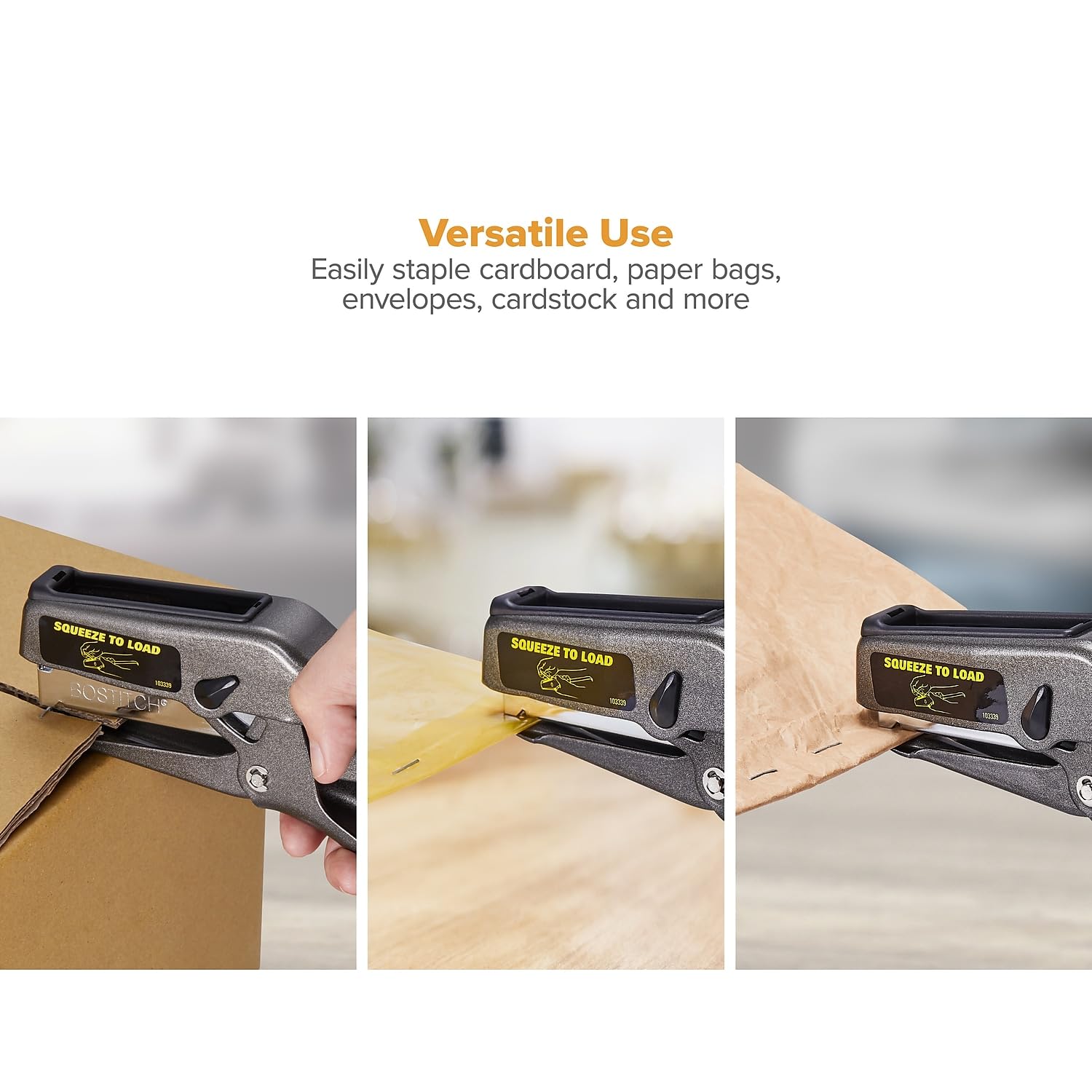 - Staples 2-45 sheets and light corrugate and plastic. Uses 1/4 Inch (B001P268MQ) or 3/8 Inch (B00006IFMR) B8 PowerCrown staples
