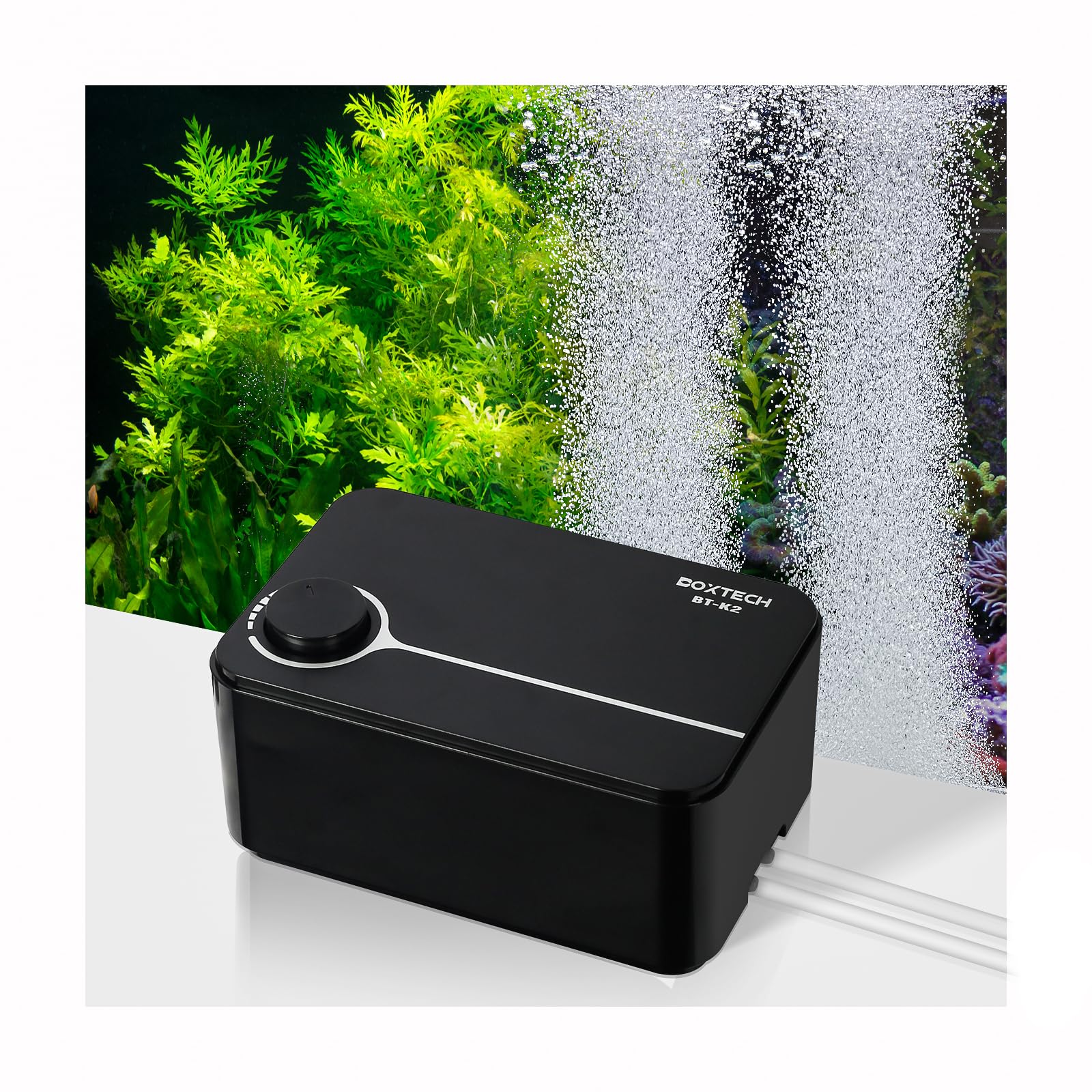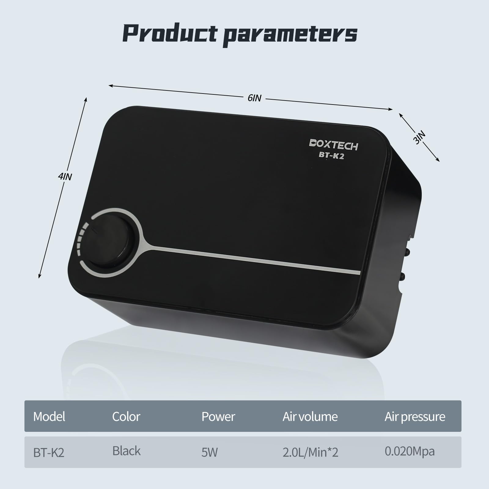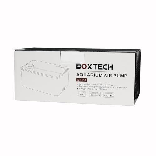 Boxtech Fish Tank Air Pump - Aquarium Adjustable Fish Oxygen Pump, Ultra-Quiet Aerator Bubbler with Dual Outlet, 5w 2L/min Tank Bubbler for 10-150 Gallon Tanks