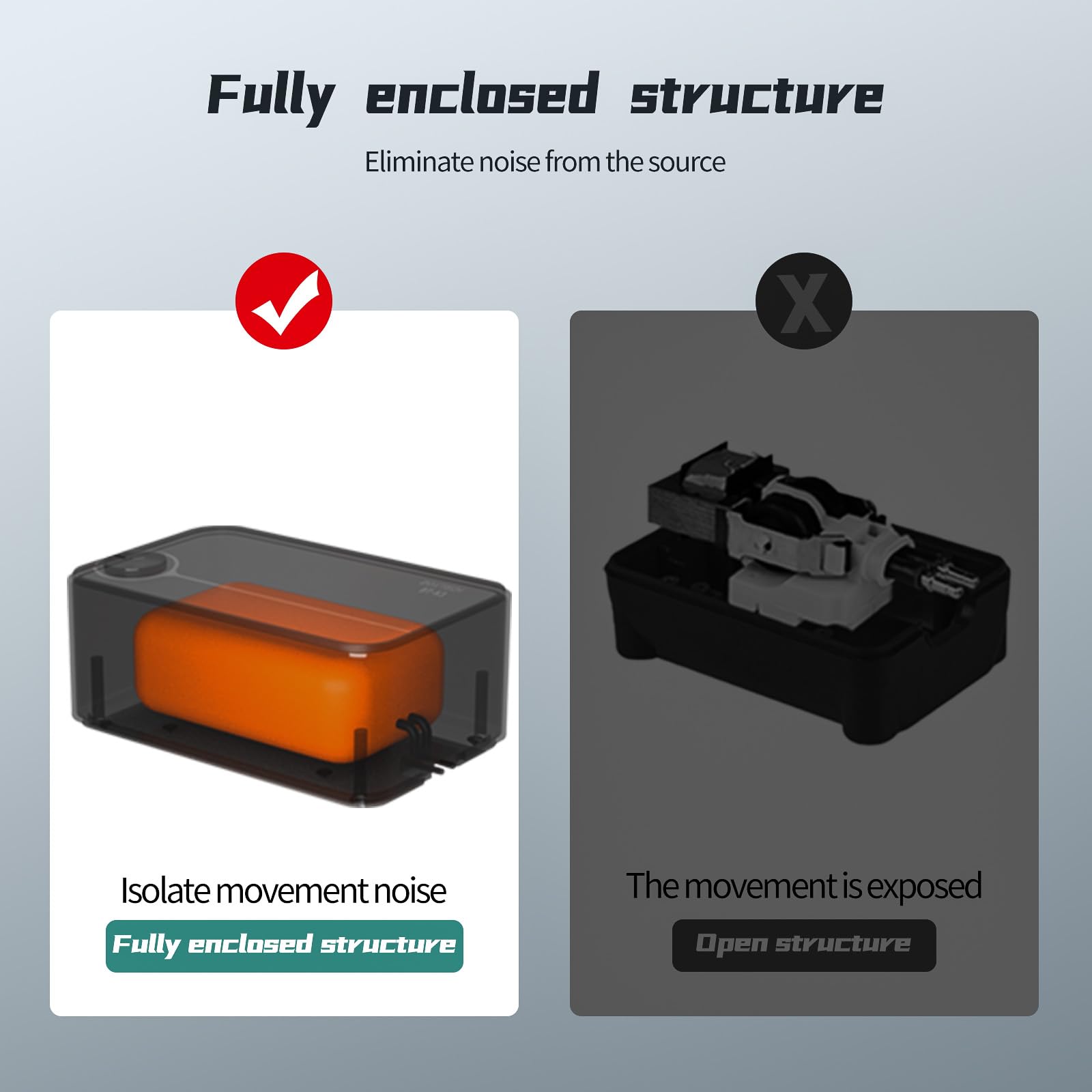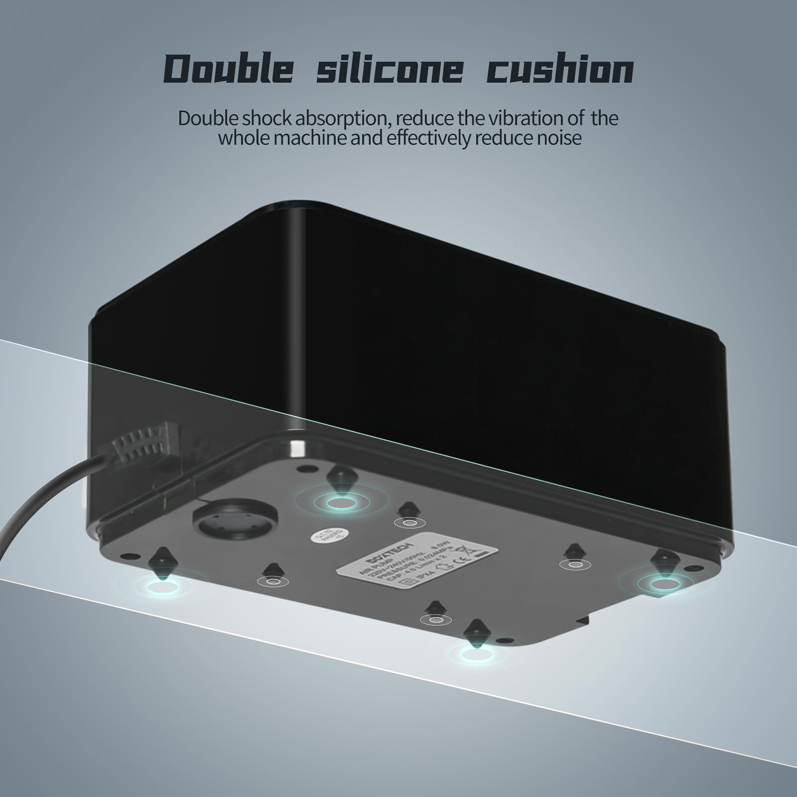 - 𝐒𝐢𝐥𝐞𝐧𝐭 𝐀𝐪𝐮𝐚𝐫𝐢𝐮𝐦 𝐀𝐢𝐫 𝐏𝐮𝐦𝐩: Oxygen pump for fish tank Designed with thickened ABS plastic and 8 lower rubber feet to reduce noise and vibration. It has a bearingless motor with magnetic bearing and internal support feet to prevent motor contact with the cover, resulting in even less noise.