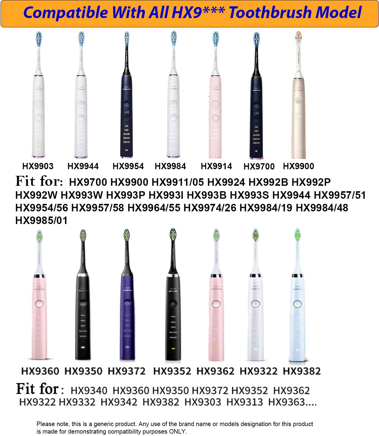 - 【Compatible with DiamondClean Toothbrush】 HX9700 HX9900 HX9911/05 HX9924 HX992B HX992P HX992W HX993W HX993P HX993I HX993B HX993S HX9944 HX9957/51 HX9954/56 HX9957/58 HX9964/55 HX9974/26 HX9984/19 HX9984/48 HX9985/01
