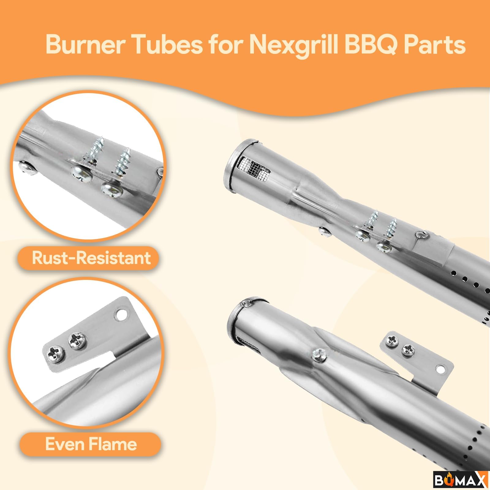 BQMAX Replacemrnt Parts Kit for Nexgrill 720-0888, 720-0888N Gas Grill Models, Heat Plates Shield Replacement Parts, Flame Tamers, Heat Tents, Grill Burner Replacemnt Parts for Nexgrill,Tube Burner Repair Kit (5-Pack)