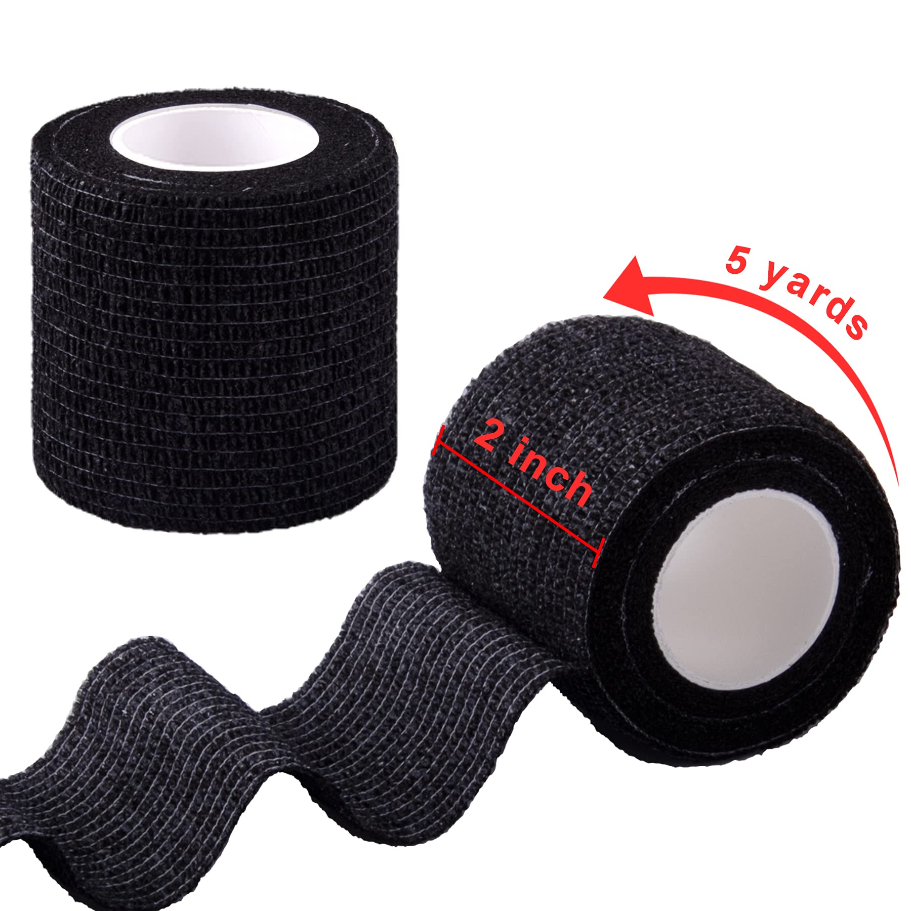- BQTQ athletic wrap rolls - come with 60 rolls 2 inch cohesive bandage in black color, 5 yards for each roll(Before stretching length is 2.5 yards, after stretching length is 5yards), enough quantity for your daily use and replacement