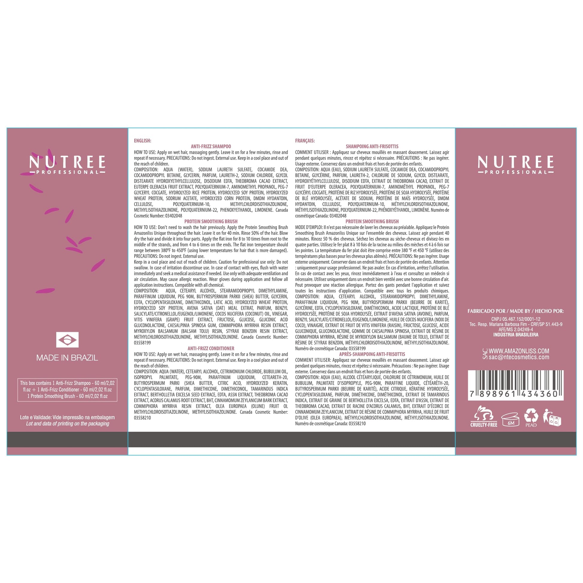 - FROM BRAZIL WITH LOVE! OUR UNIQUE FORMULA INCLUDES WHEAT, SOY, CORN, RICE PROTEINS, AÇAI BERRIES, AND VITAMINS B5 AND B3. Our ingredients are specially chosen to enhance the action of keratin and provide additional hydration, revitalization, and regeneration. It’s here, in Brazil, that this popular salon treatment was developed. Now, the benefits of keratin straightening have become famous around the world. It’s time to say no to pesky split ends and brittle fly aways!