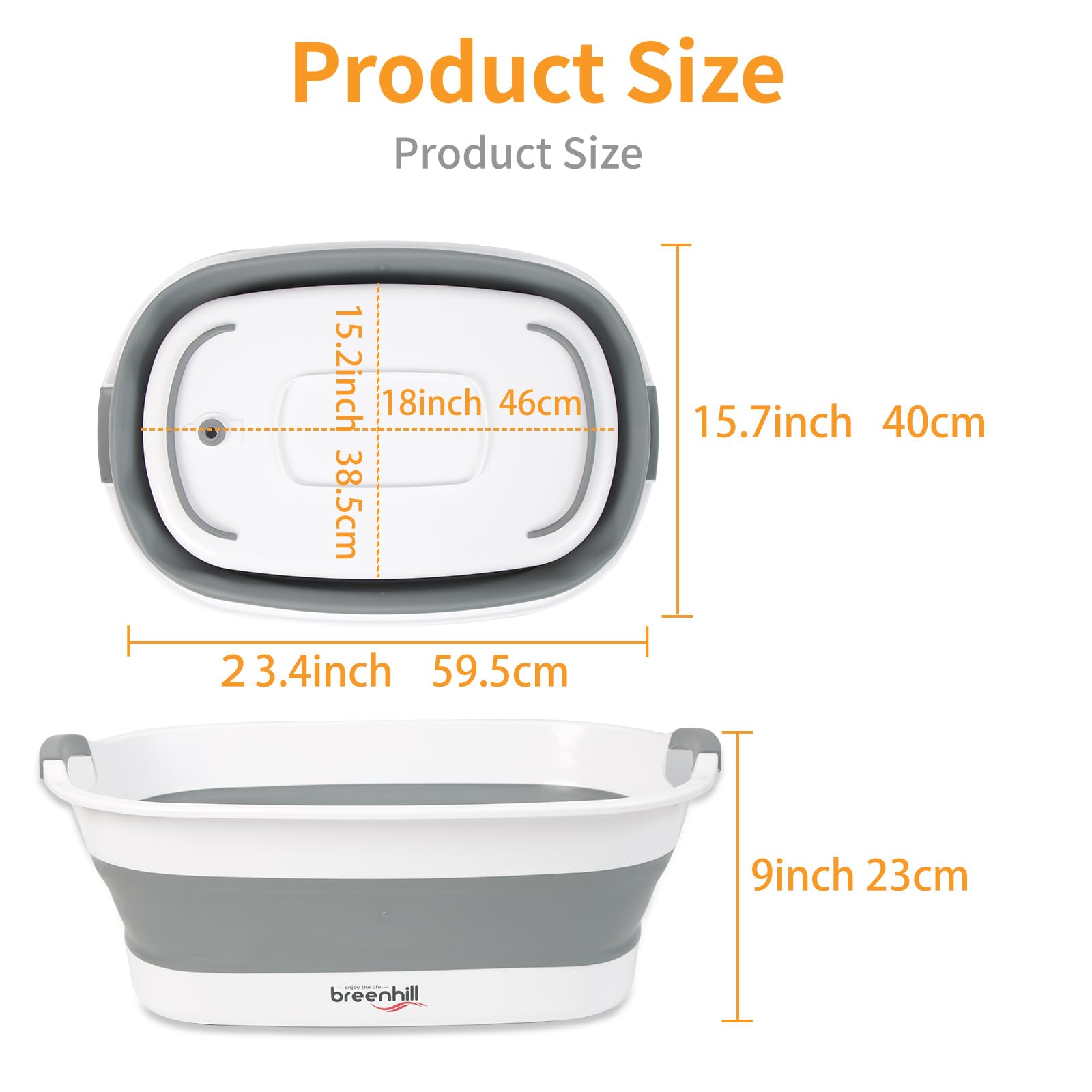 - 【Size】Expanded size:23.4 x 15.7 x 9(h) inches.Collapsed:3.5 inches. The exterior bottom dimension is about 15.2 x 18 inches. Capacity: 23 L / 6.1 gallons