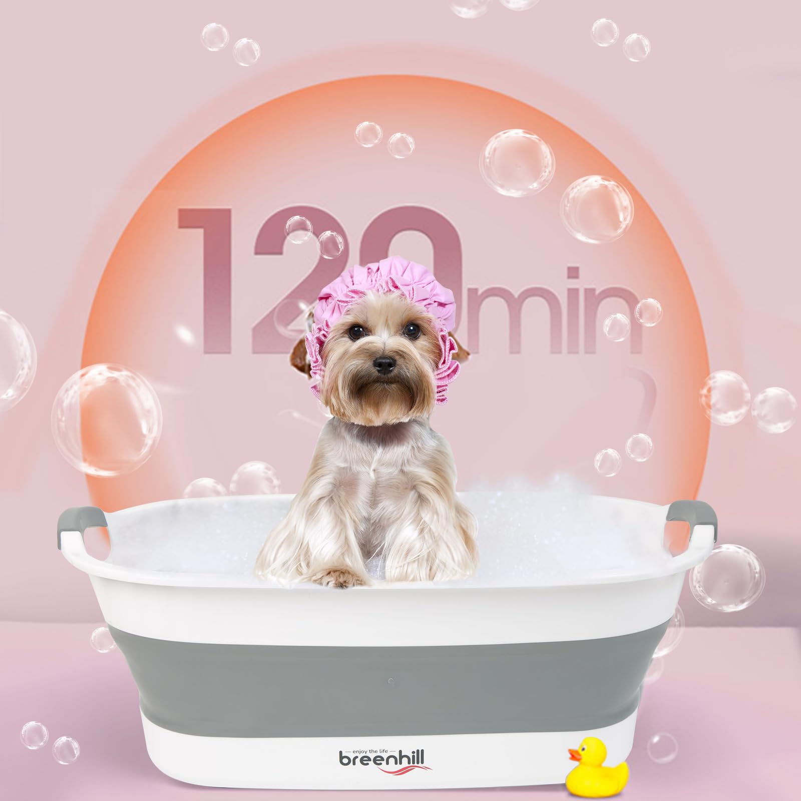 BREENHILL Collapsible Dog Bath Tub for Small Dogs & Cats, Portable Puppy Bath Tub with Water Drain Plug, Space Saving Foldable Pet Bathtub for Indoor & Outdoor Use, Grey