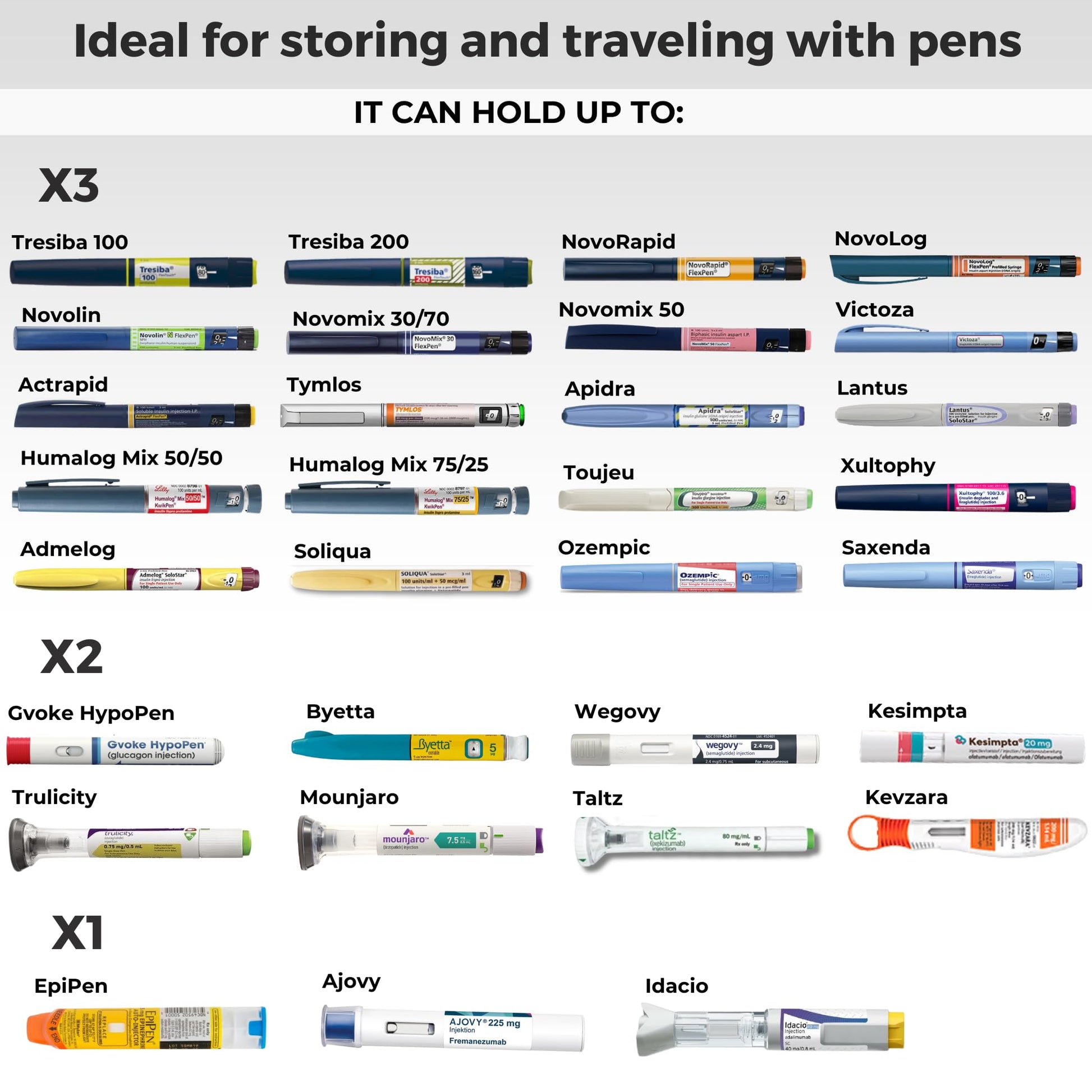 - GREAT FOR INSULIN, EPIPENS AND MORE - Our flexible design fits a variety of medicine; the "basic" model can fit up to 3 insulin pens or 1 EpiPen