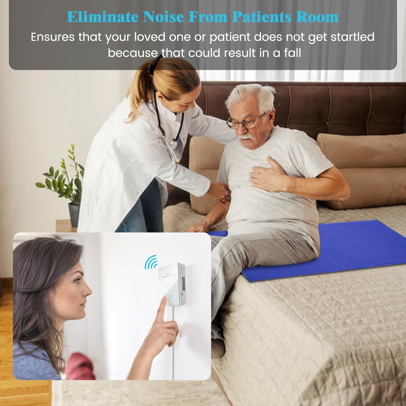 - ELIMINATE NOISE FROM PATIENTS ROOM: The bed alarms for elderly can be installed in any convenient location away from the elderly, ensures that your loved one or patient does not get startled because that could result in a fall. The alarm range is up to 300ft and the volume can be adjustable (3 levels), which you can adjust to your needs to eliminate indoor alarm noise and provide a quieter living environment for your family. Allow alarm reset