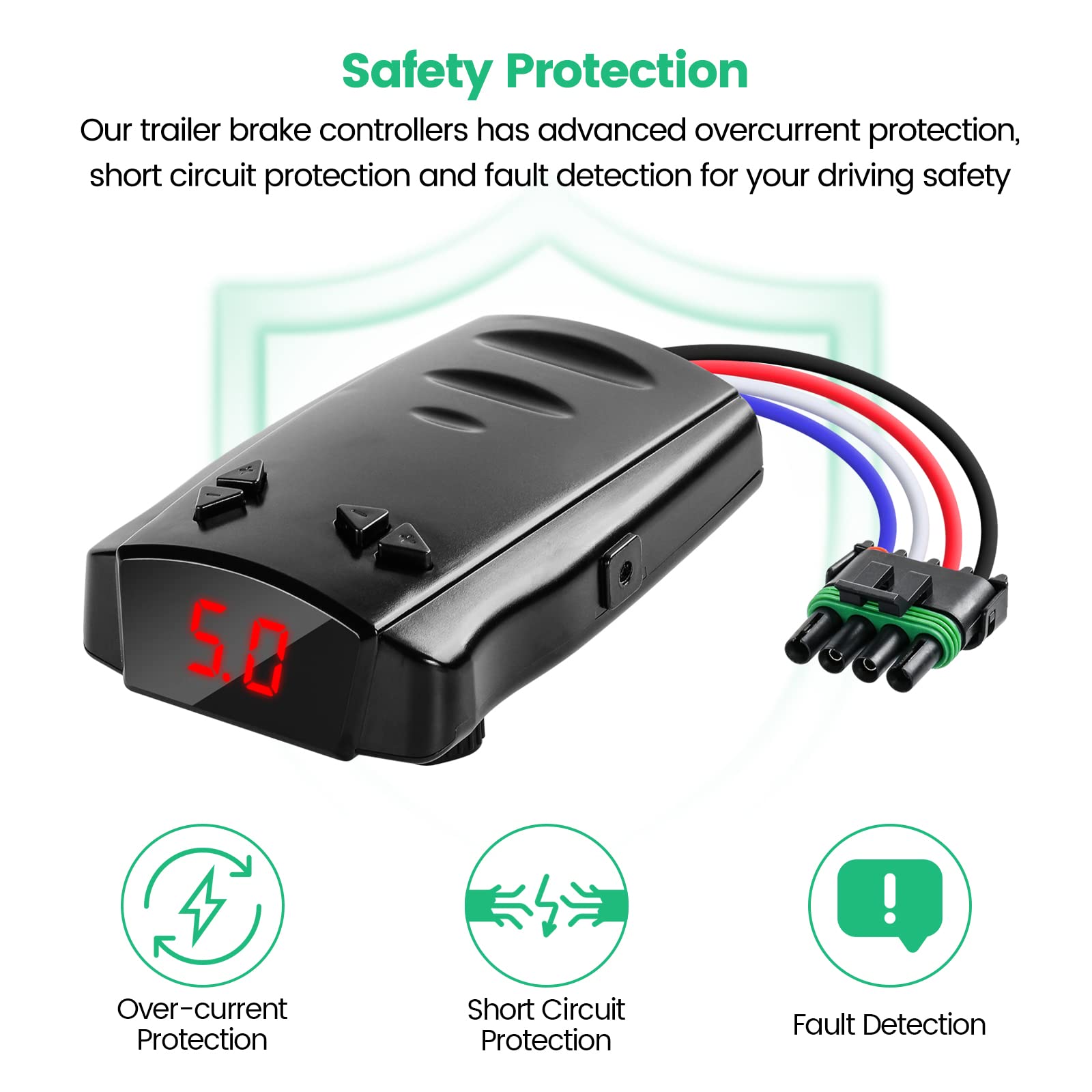 - SAFETY PROTECTION & EASY TO USE: Our trailer brake controllers has advanced overcurrent protection, short circuit protection and fault detection for your road safety. With LED display, real-time display of your current Settings, output voltage and fault diagnosis, so that you can solve problems in a timely manner. Simple operation, just by adjusting the button or toggle the emergency manual switch can meet your traction needs