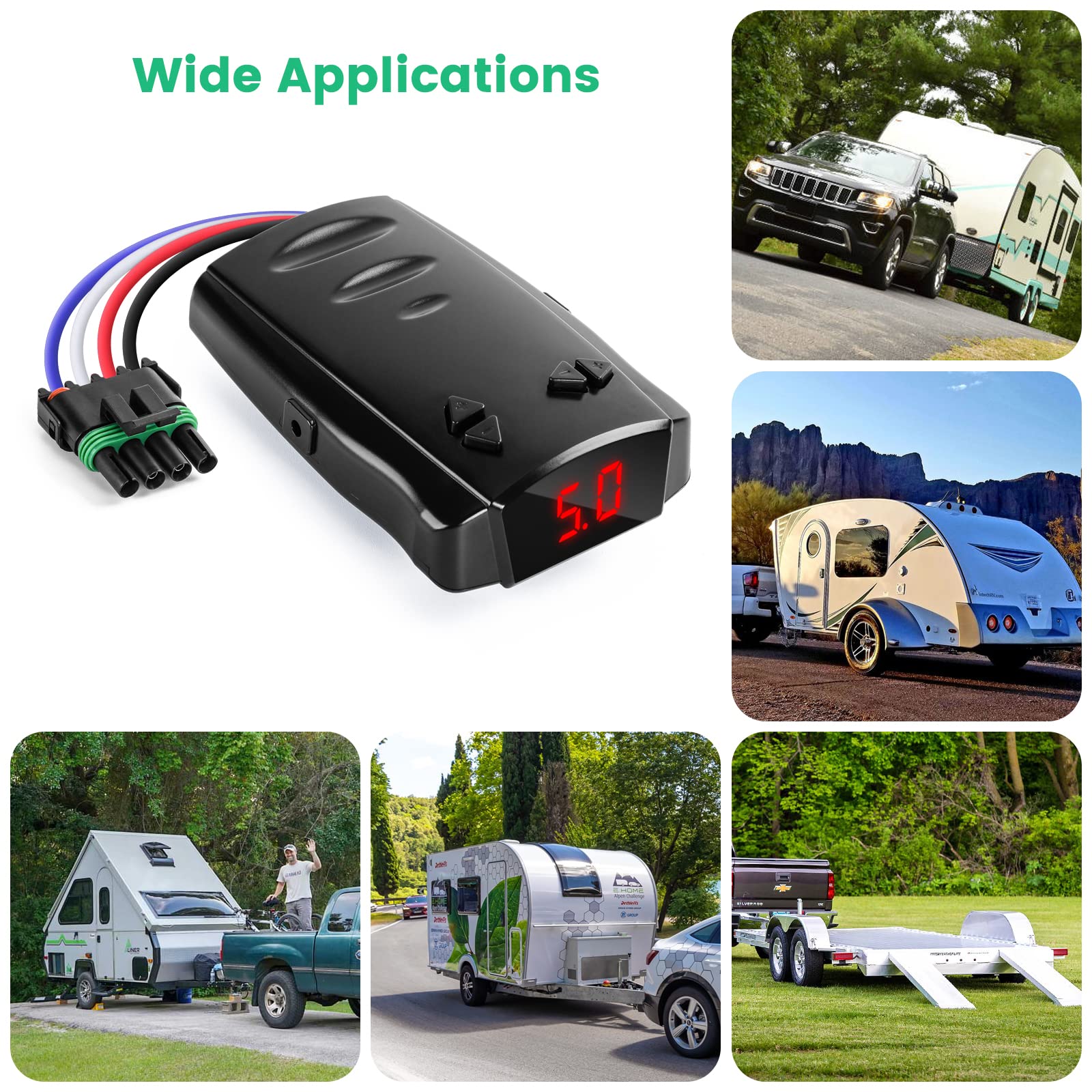 - COMPATIBILITY: The trailer brake controller kit is compatible with any vehicle now your driving, designed to operate 1 to 4 braked axles (2- 8 brakes), ideal for light duty towing and Occasional towing, etc