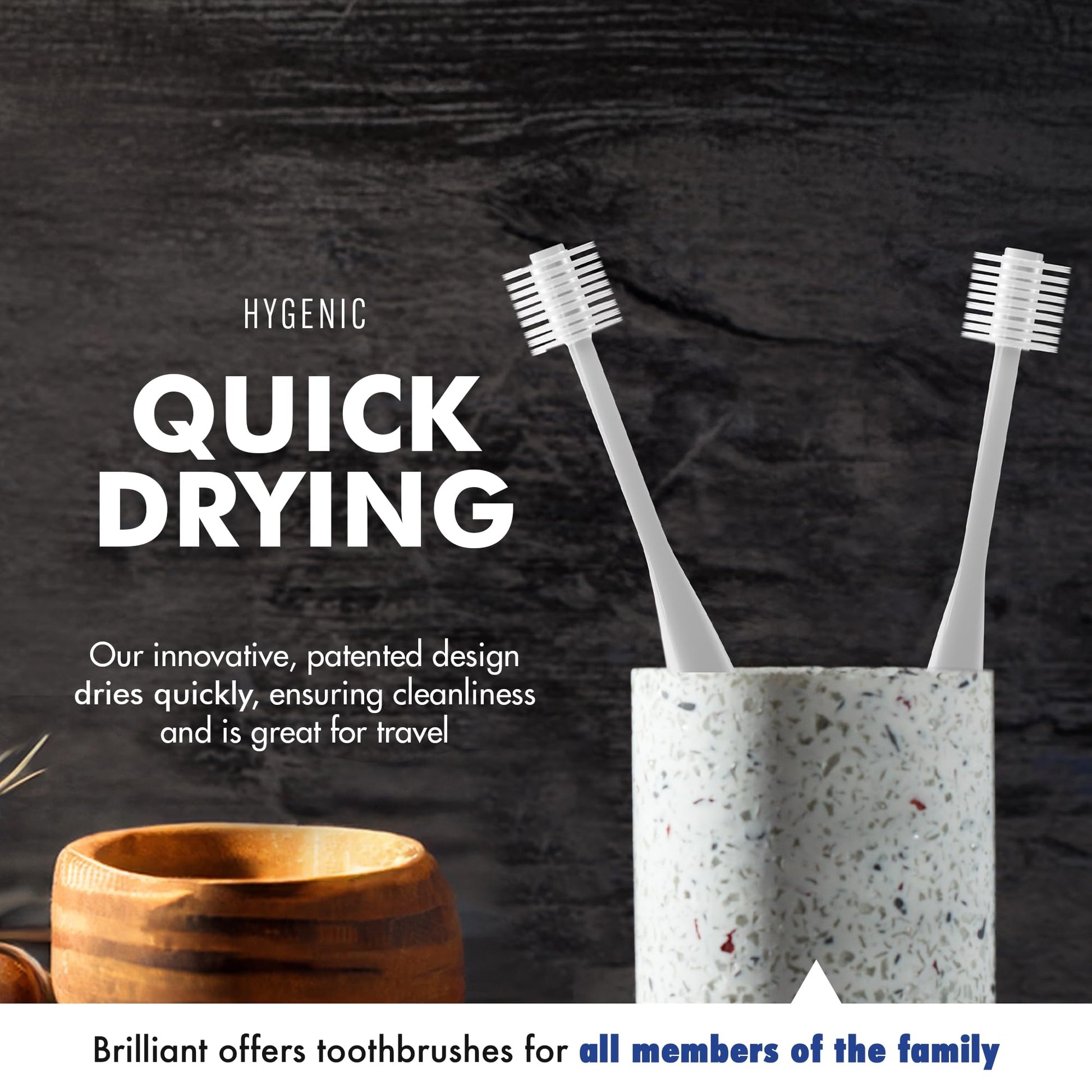 Details: Brilliant Sensitive Toothbrush for diabetics, seniors, and elderly, who experience oral sensitivity, and for those with sensitive teeth and gums. With Brilliant Sensitive, there is nothing holding you back from enjoying comfortable brushing and a healthy mouth. For seniors and diabetic adults, tender gums and teeth can make maintaining a regular oral care routine challenging. That’s why our Brilliant all round 360 degree Sensitive Toothbrush has thousands of ultra-fine microfiber bristles that protect delicate mouths while thoroughly cleaning the surface of each tooth. Round brush head and bristle design brushes in every direction, for an all-around over 18,000 microfine bristles toothbrush are soft enough for extra sensitive mouths.