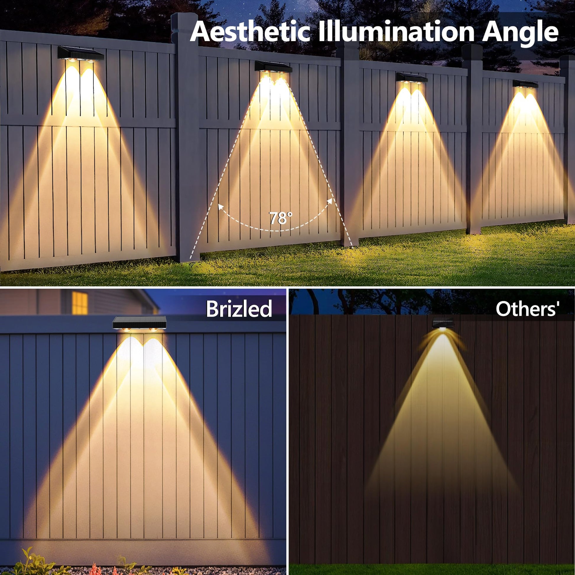 - Upgraded Double Optical Lens Design, 250 Lumens Bright Fence Solar Lights: The upgraded spot lens of our solar fence lights ensures brighter and more focused illumination, 250 lumens, enhancing visibility along fences and outdoor areas.