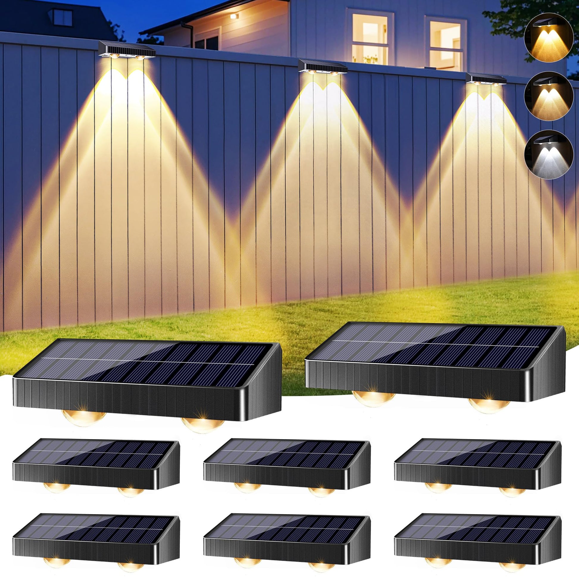Brizled Solar Fence Lights, 8 Pack 3 Colors 6 Modes 250ml Fence Solar Lights Outdoor, IP65 Waterproof Outdoor Wall Light Landscape Lighting for Outside Backyard Yard Garden Patio Stair Railing Wall