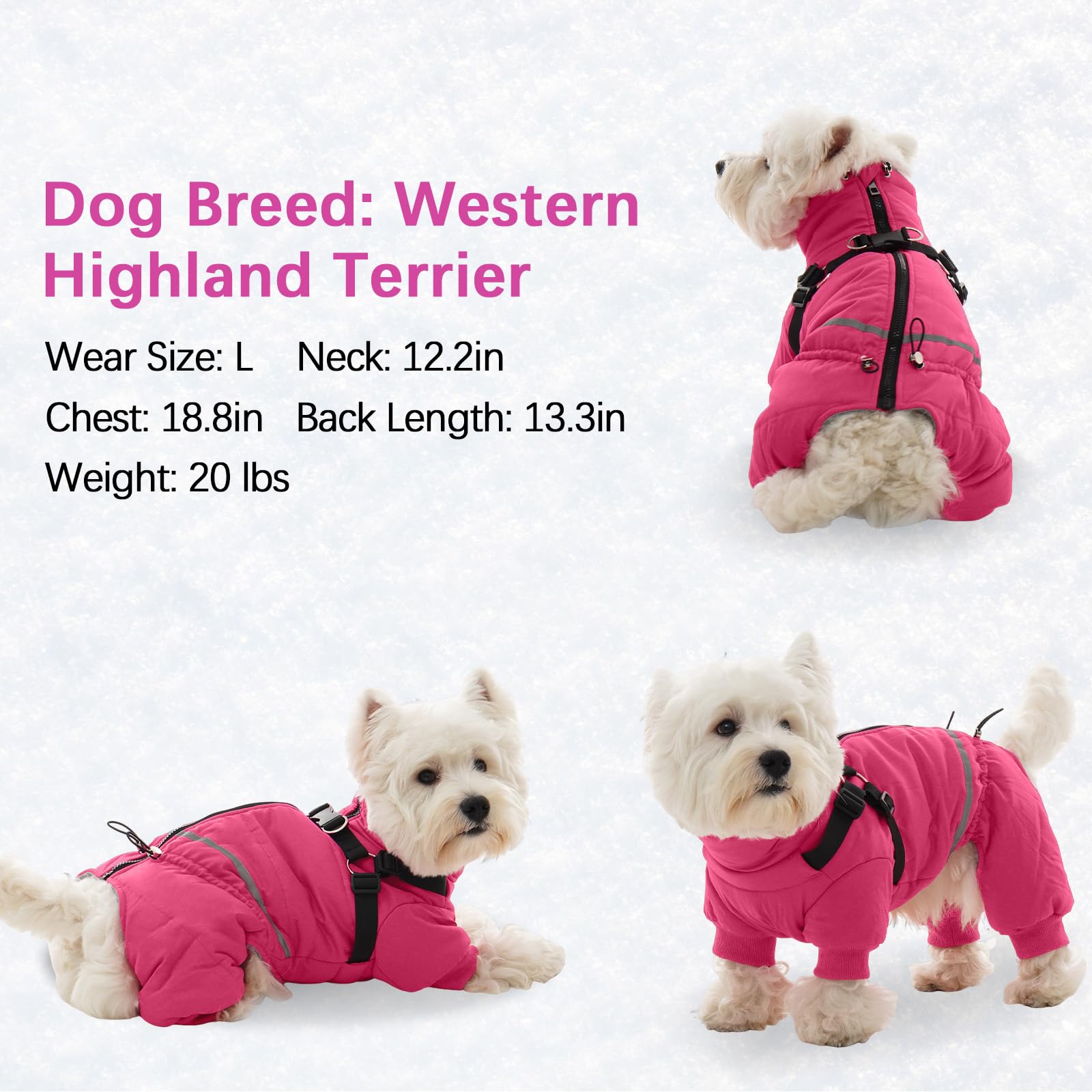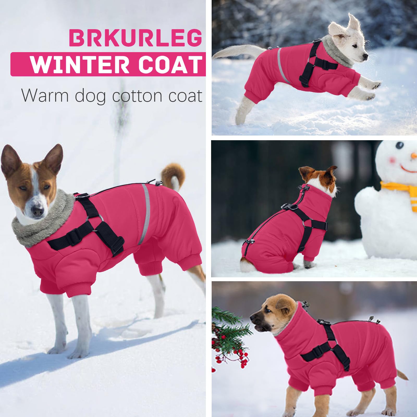 BRKURLEG Dog Winter Coat with Harness Built in, Winter Dog Jackets for Small and Medium Dogs, Small Dogs Snowsuit Reflective Windproof Cold Weather Pet Coats, Puppy Warm Fleece Coat, Hot Pink, M