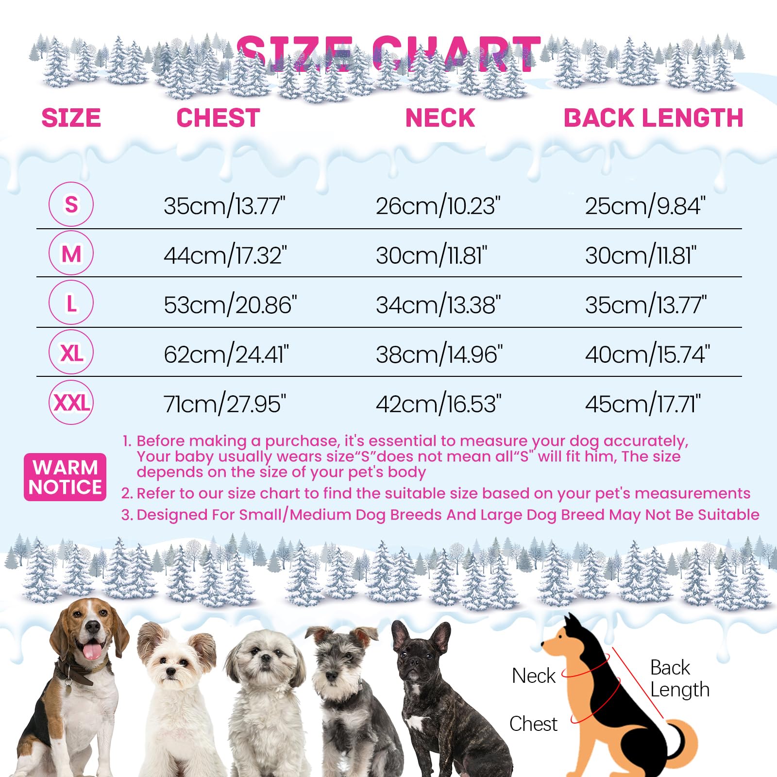 - Fits Most Small and Medium-sized Dogs: The dog coat five sizes available, It is not suitable for large dogs. It is only suitable for small dogs and medium dogs, such as Chihuahua, Maltese, Yorkshire Terrier, Shih Tzu, Teddy, Min Pin, Miniature schnauzer, Beagle, Fox Terrier, Boston Terrier, French Bulldog, Cocker Spaniel, Pug, Basset Hound and etc. Please measure your pet precisely then refer to our size chart to get a suitable fit.