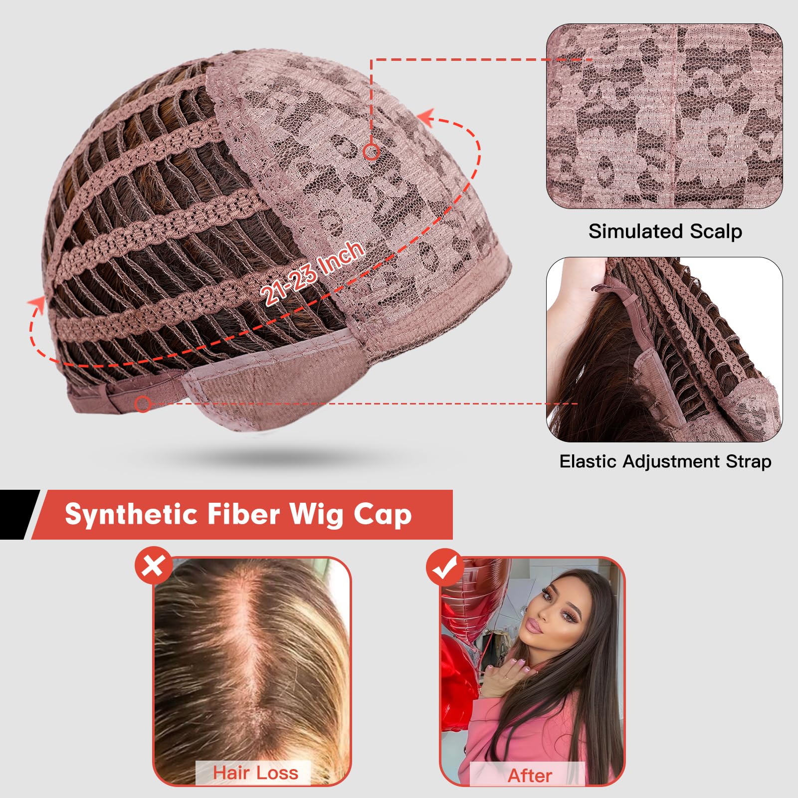 - Cap and Size:Our wig cap is about 22-24 inch. Soft straps adjust up to a 1-2 inch in either direction to achieve a more comfortable and secure fit.The wig cap is soft and breathable, suitable for any occasion and season.