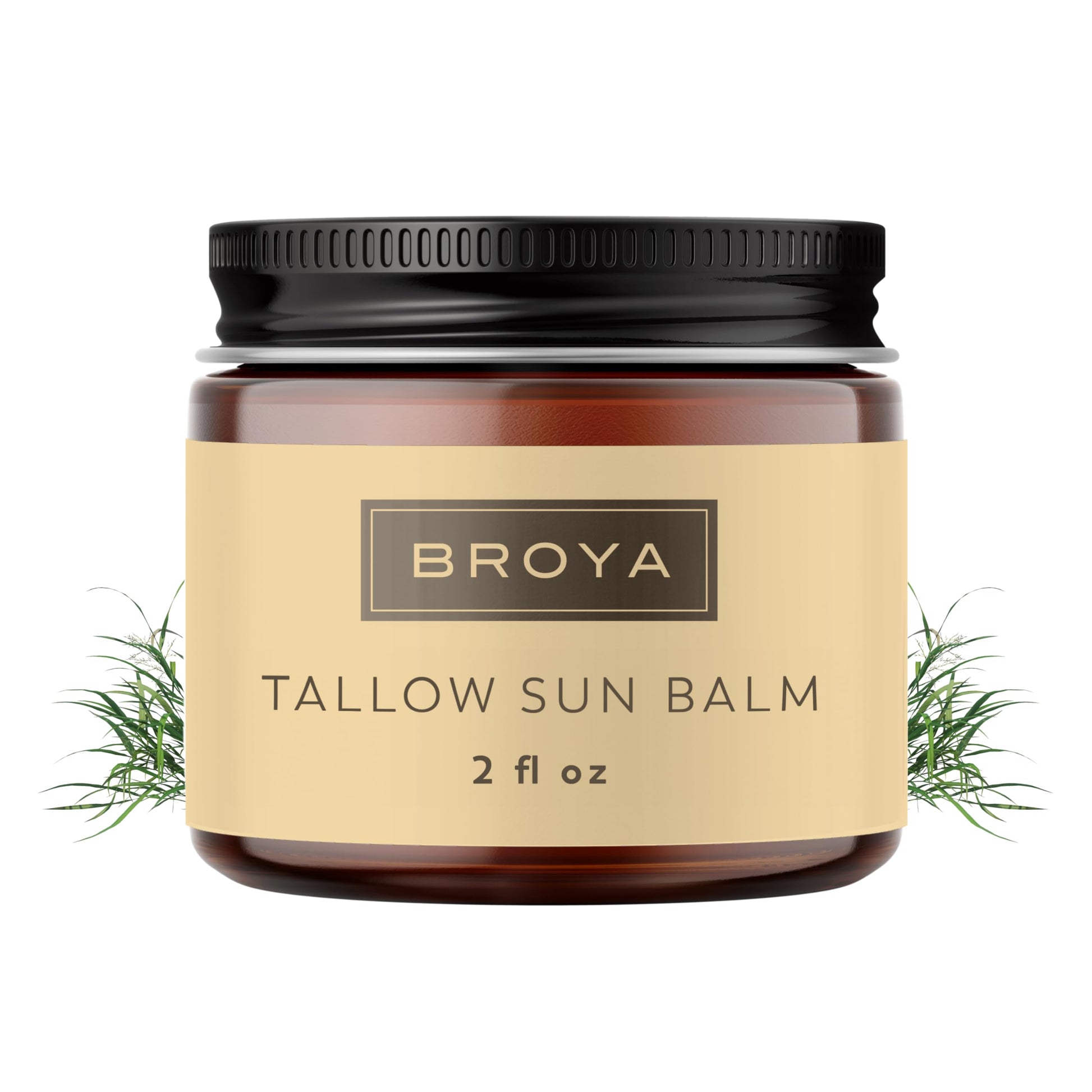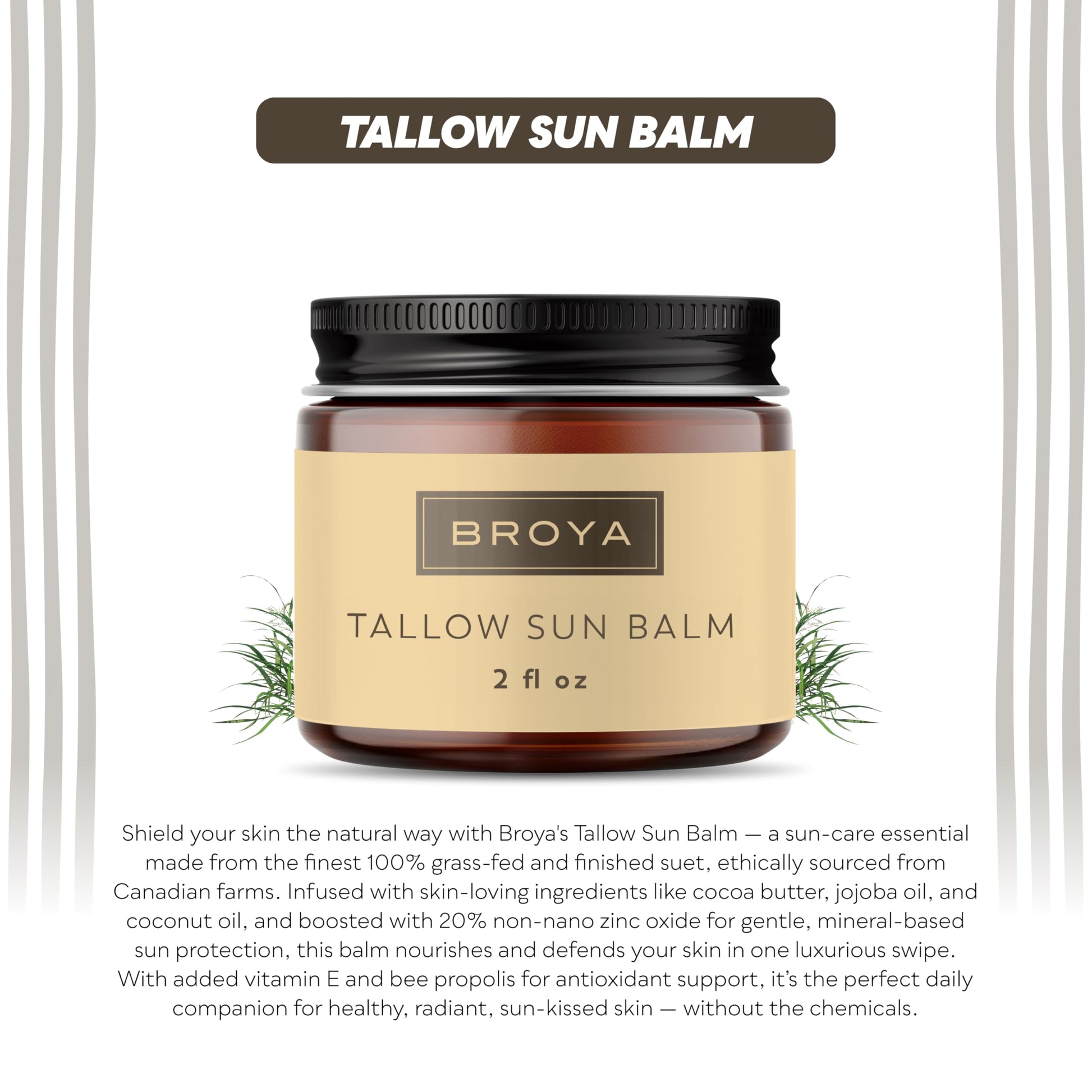 Broya Tallow Sun Balm – Mineral Face & Body Balm with 20% Non-Nano Zinc Oxide – 100% Grass-Fed Beef Tallow Moisturizer – Skin Support with Vitamins A, D, E, K – Fragrance-Free – 2 fl oz