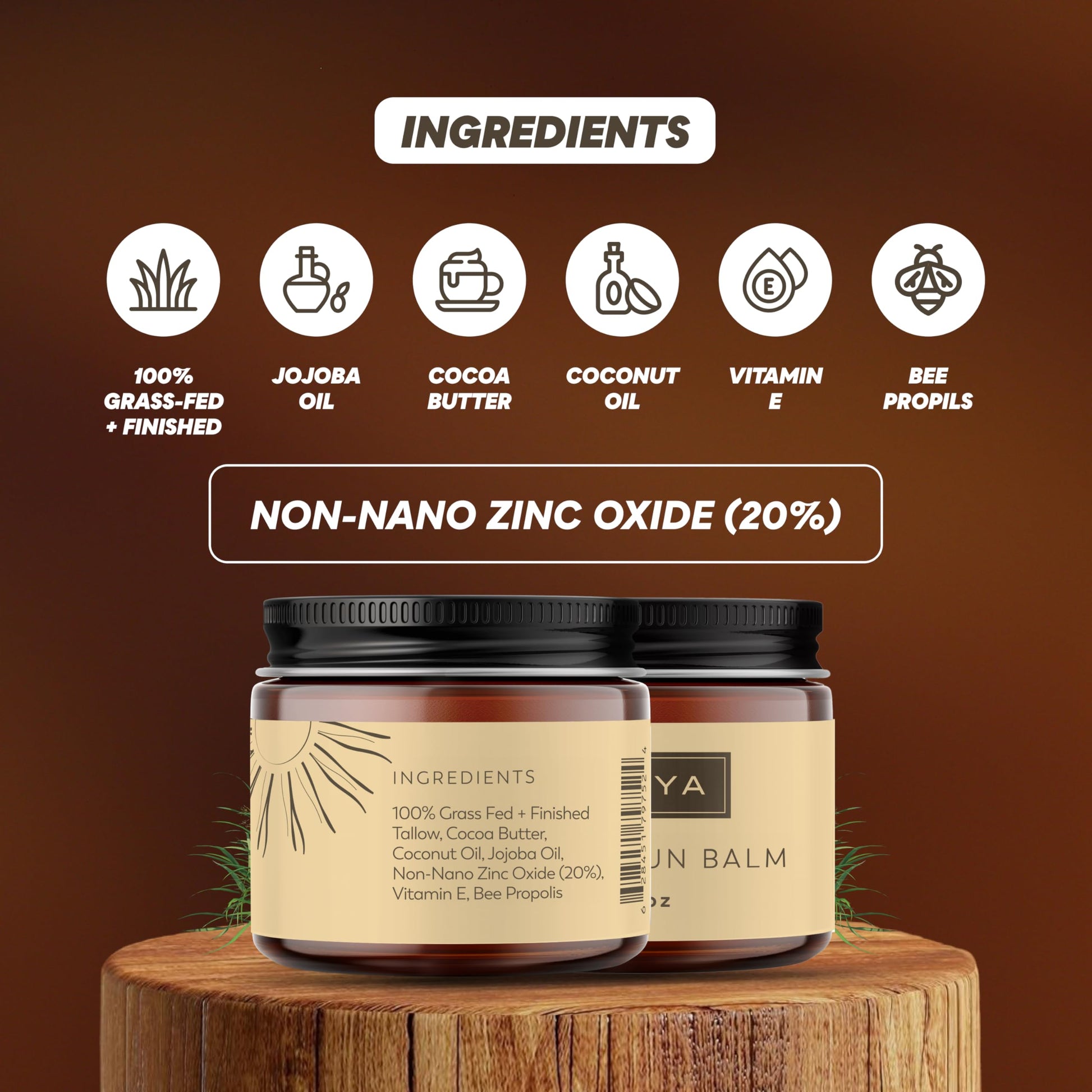- TALLOW AND ZINC BALM – Formulated with 20% non-nano zinc oxide, this tallow creates a mineral-based barrier on sun-exposed areas—offering a clean alternative to traditional without relying on chemical filters.