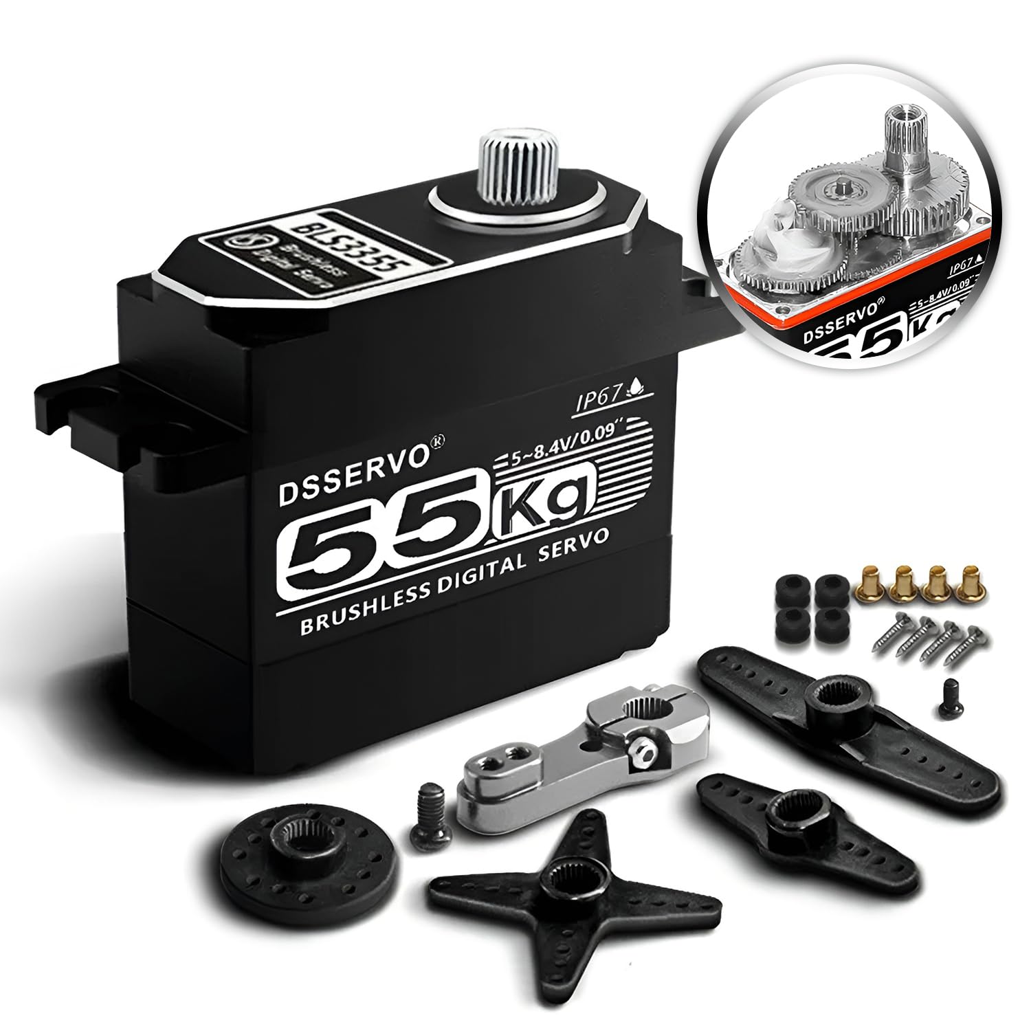 Details: High-Performance 55kg Brushless Digital Servo for RC Cars, Trucks & More – Waterproof, Coreless Motor, Precision Control