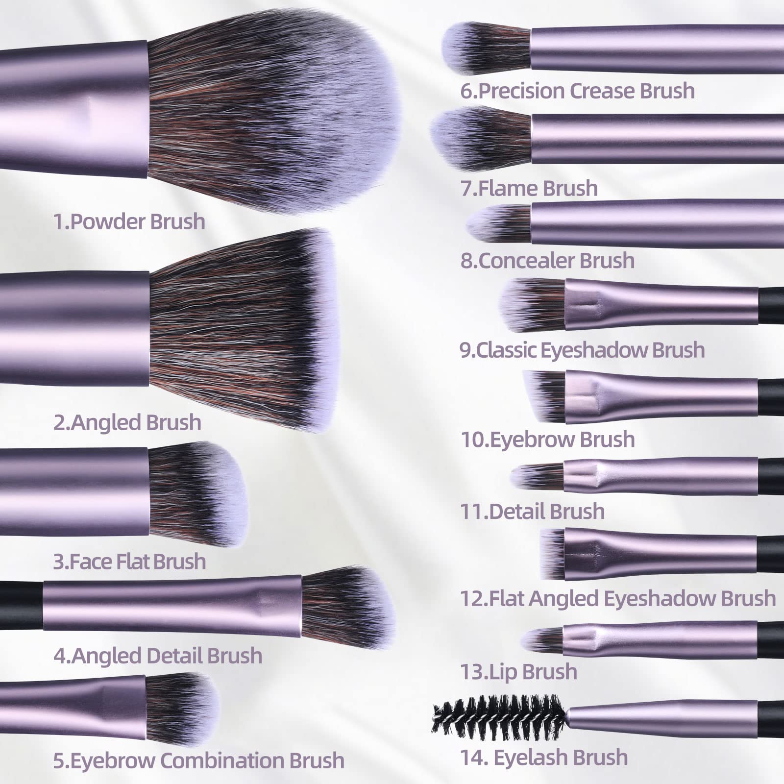 BS-MALL Travel Makeup Brush Set Foundation Powder Concealers Eye Shadows Makeup Set with LED light Mirror 14 Pcs (Purple)